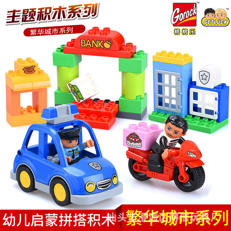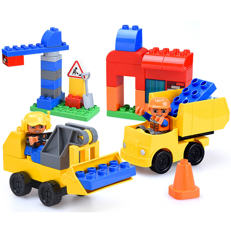 大颗粒积木汽车火车玩具男孩儿童益智工程车飞机车轮场景3-6岁