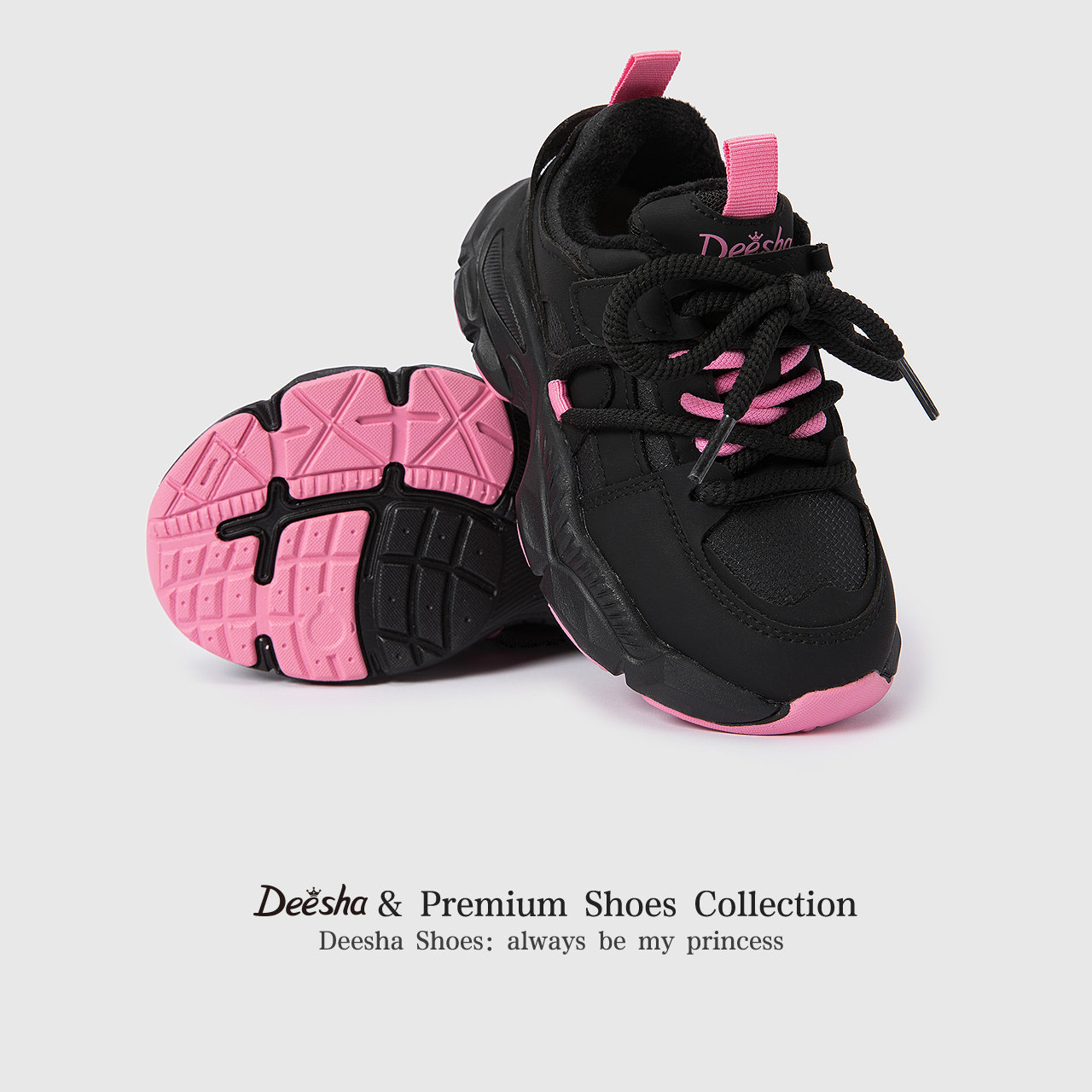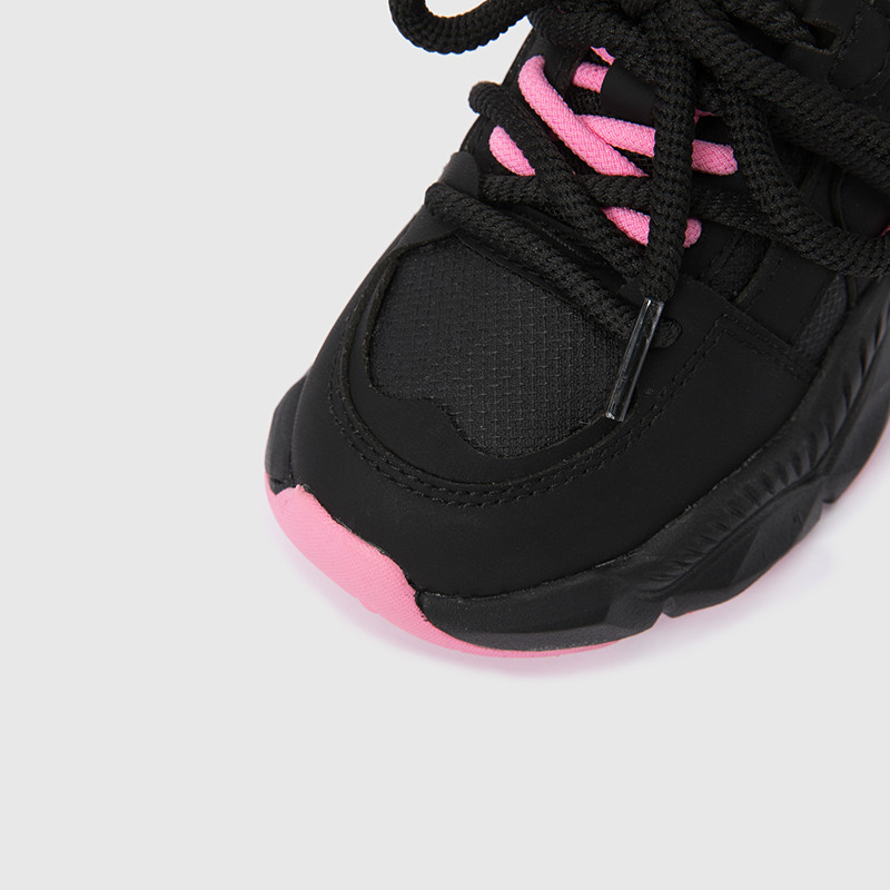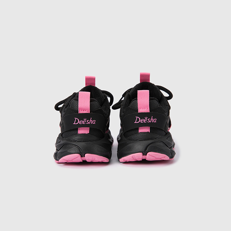 笛莎儿童黑色甜酷老爹鞋25冬季新款女童加绒运动鞋中大童休闲鞋子