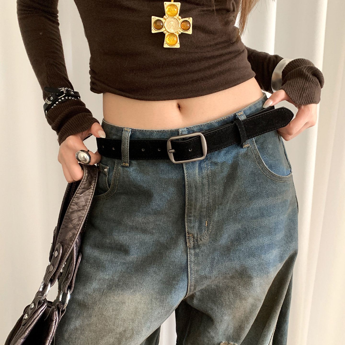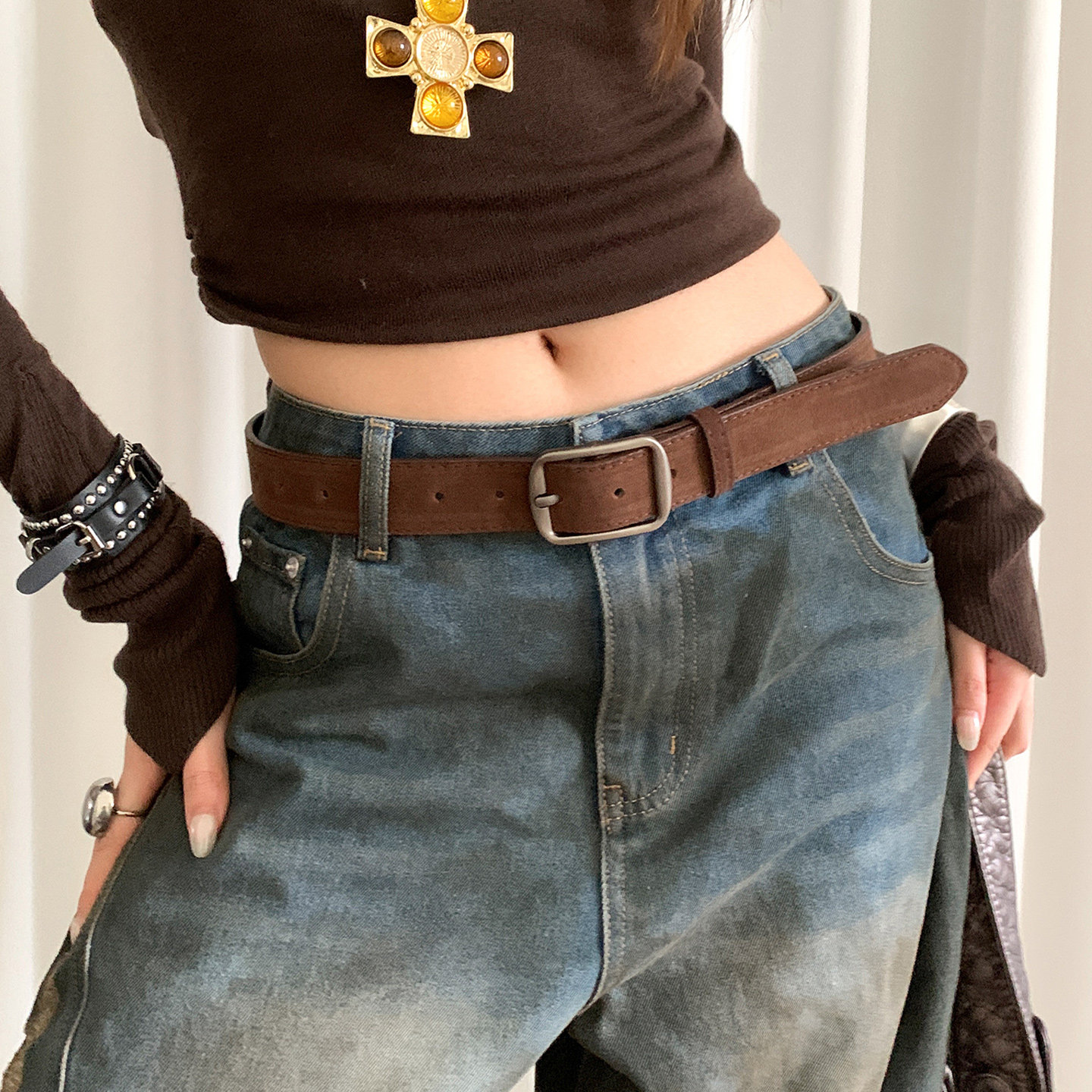 韩版复古绒面棕色腰带女小众美拉德配裙子牛仔裤带高级感皮带装饰