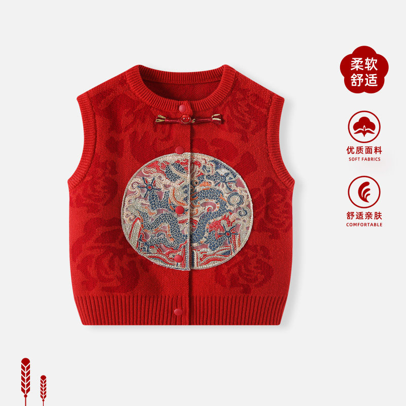 宝宝马甲冬季男童红色新中式女童背心婴儿拜年服男宝过年新年衣服