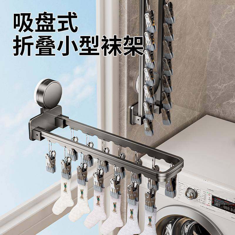 吸盘晒袜子神器阳台家用墙上内衣裤夹防风晾晒架折叠多夹子凉衣架