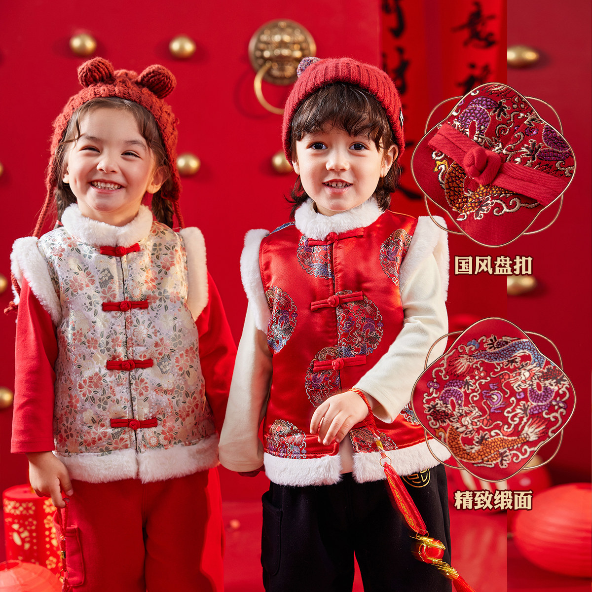 龙年宝宝过年服儿童唐装马甲秋冬男童新年装女童拜年服中国风童装