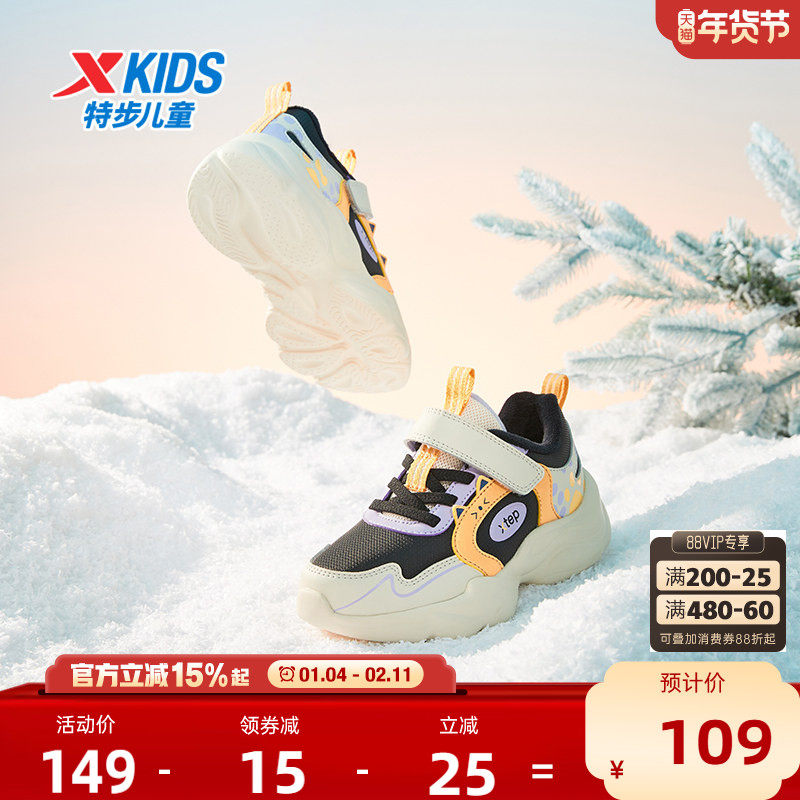 喵喵鞋|特步女童鞋2026新款秋冬季加绒保暖二棉棉鞋运动鞋儿童鞋