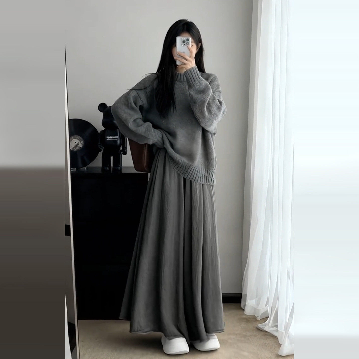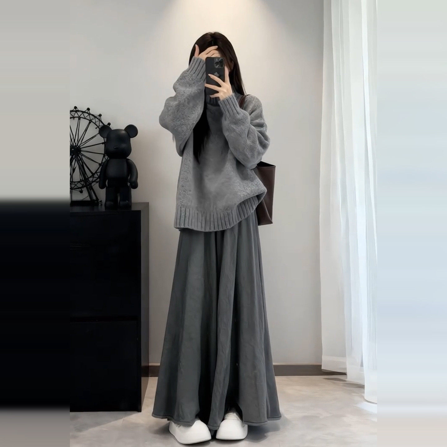 小个子慵懒风毛衣针织连衣裙女2026春季新款宽松显瘦气质套装长裙