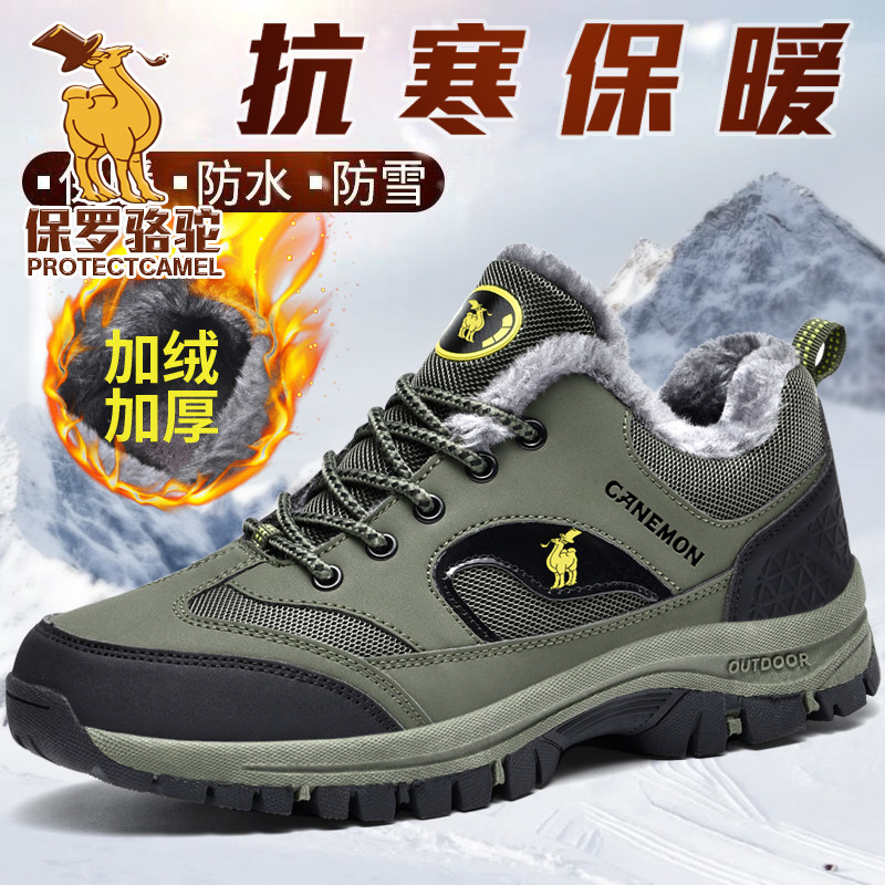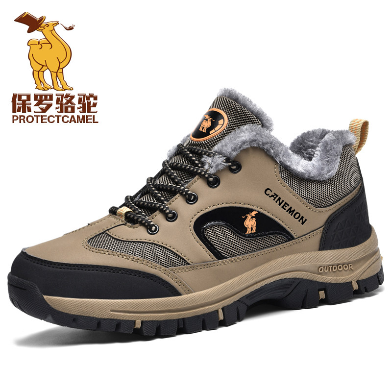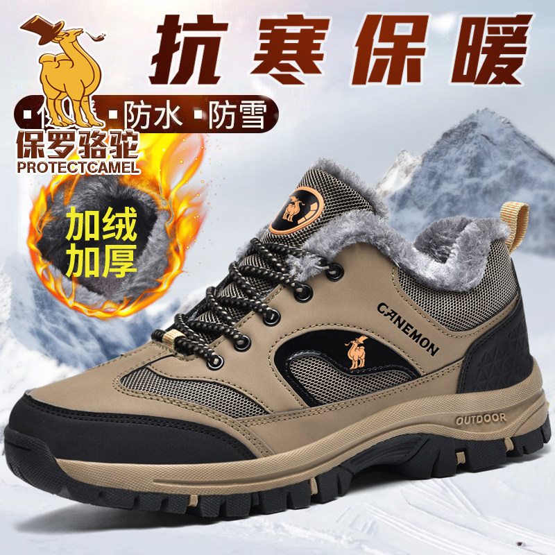 保罗骆驼户外登山鞋男防滑耐磨运动鞋2025新款冬季加绒棉鞋休闲鞋