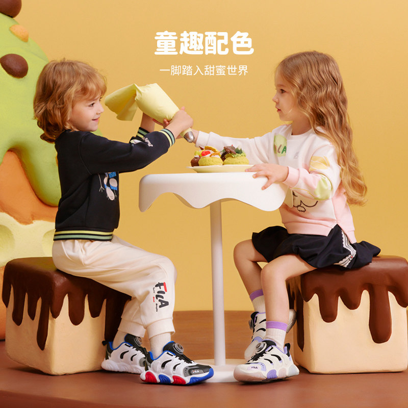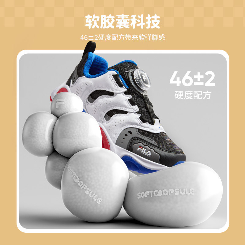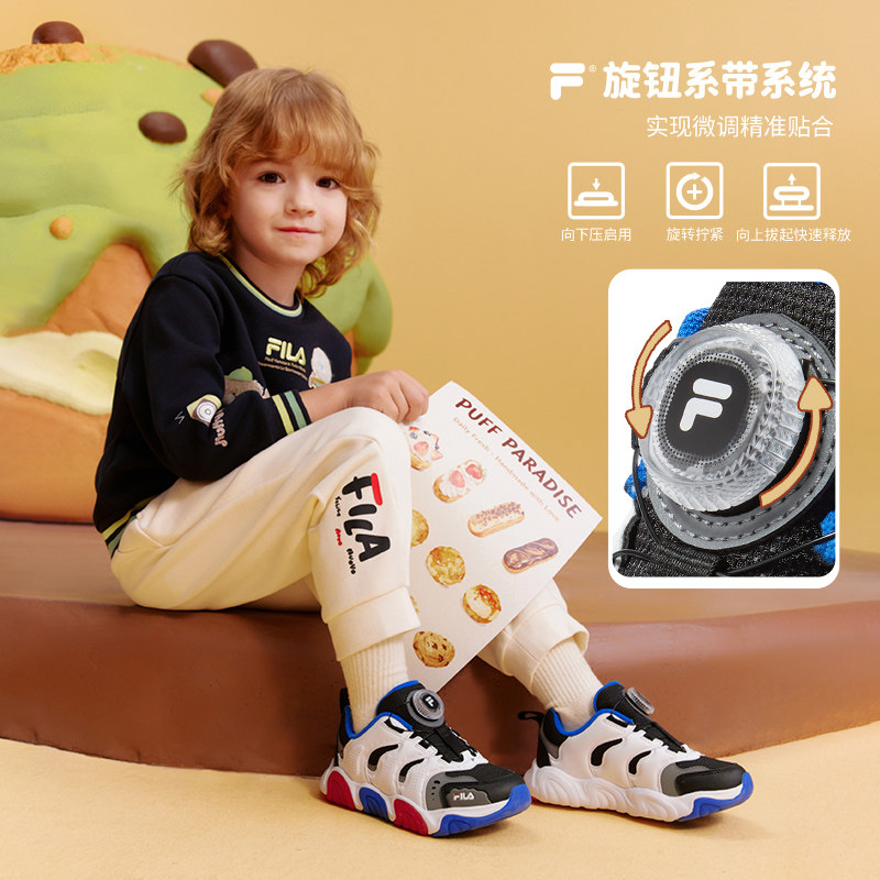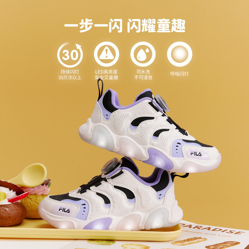 FILA斐乐儿童童鞋运动鞋2026春季新款男女童小童旋钮扣泡芙闪灯鞋