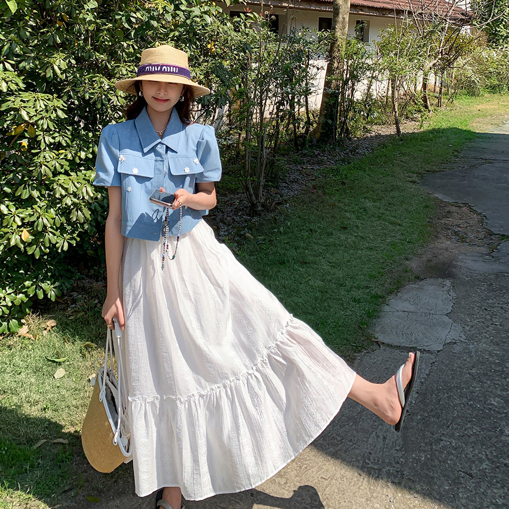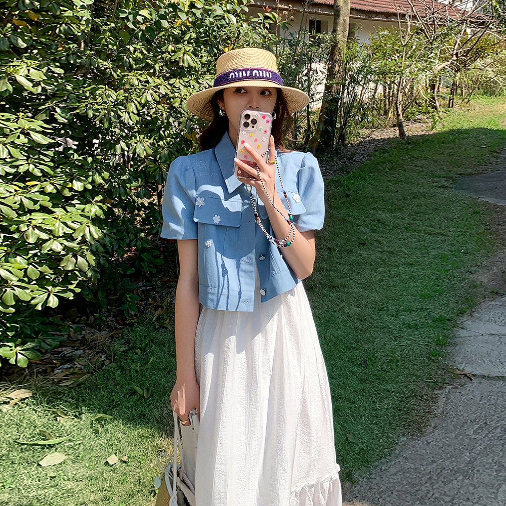 白色吊带连衣裙配蓝色牛仔短袖外套春装女2026年新款轻奢高级感