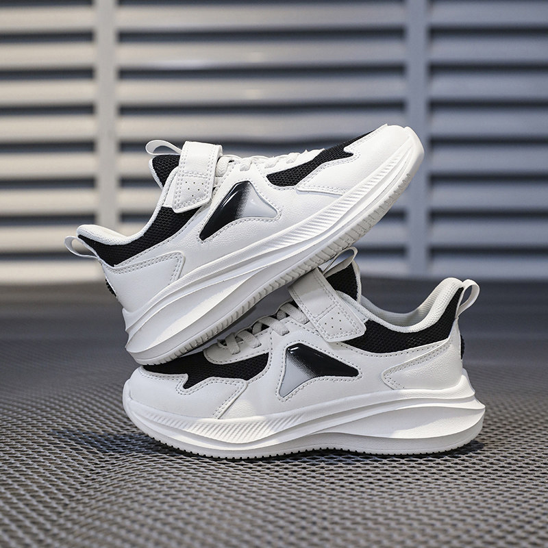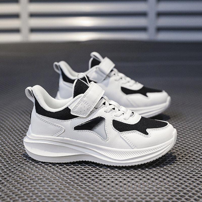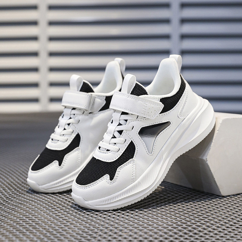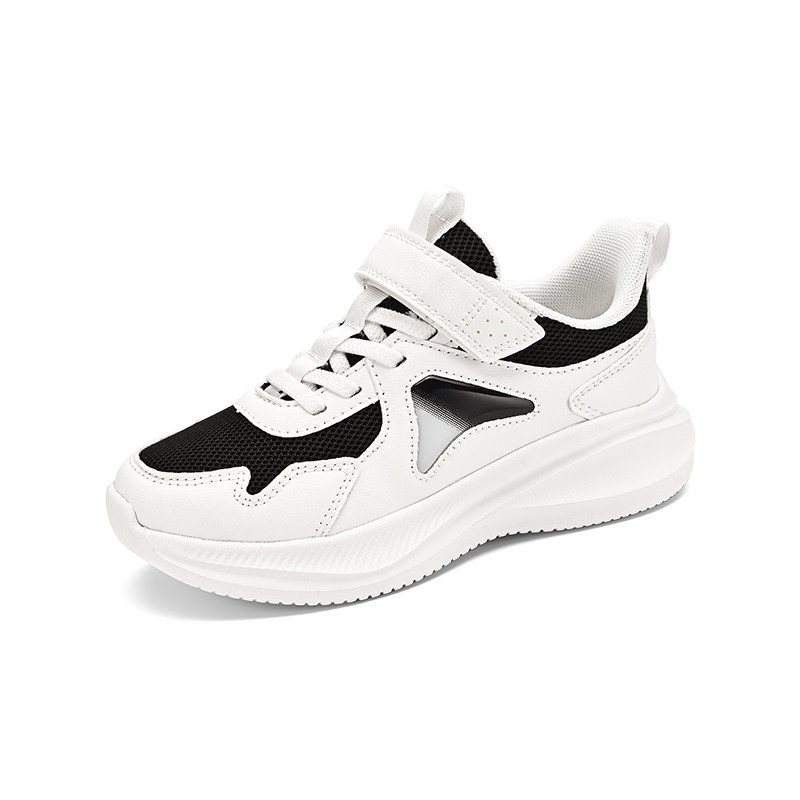 儿童魔术贴白色运动鞋女童网面透气小学生轻便减震超轻男童跑步鞋