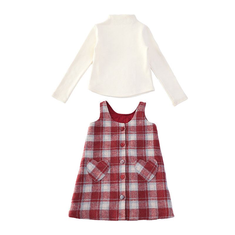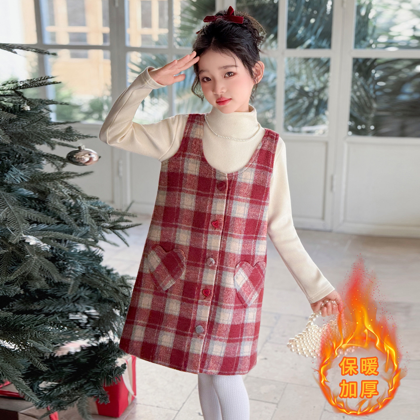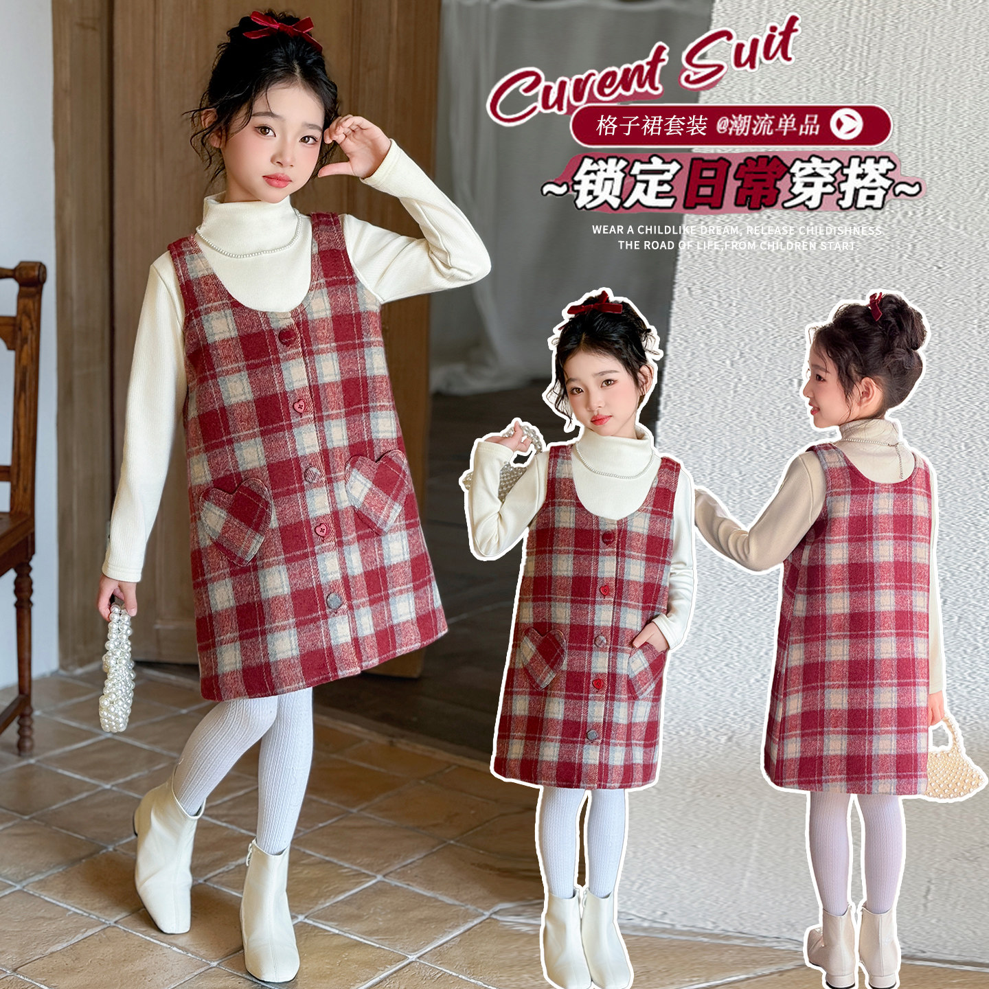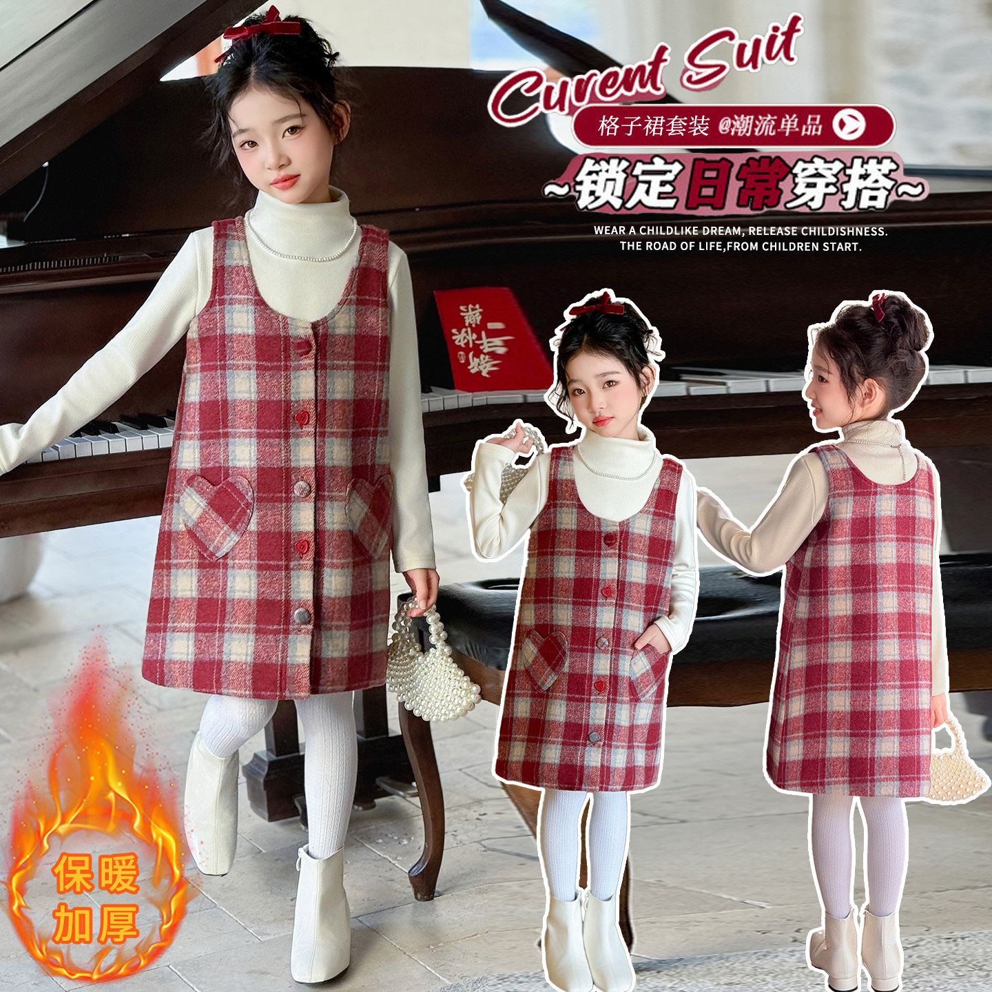 女童连衣裙套装儿童冬装裙子女孩过年新年衣服中大童小香风套装裙
