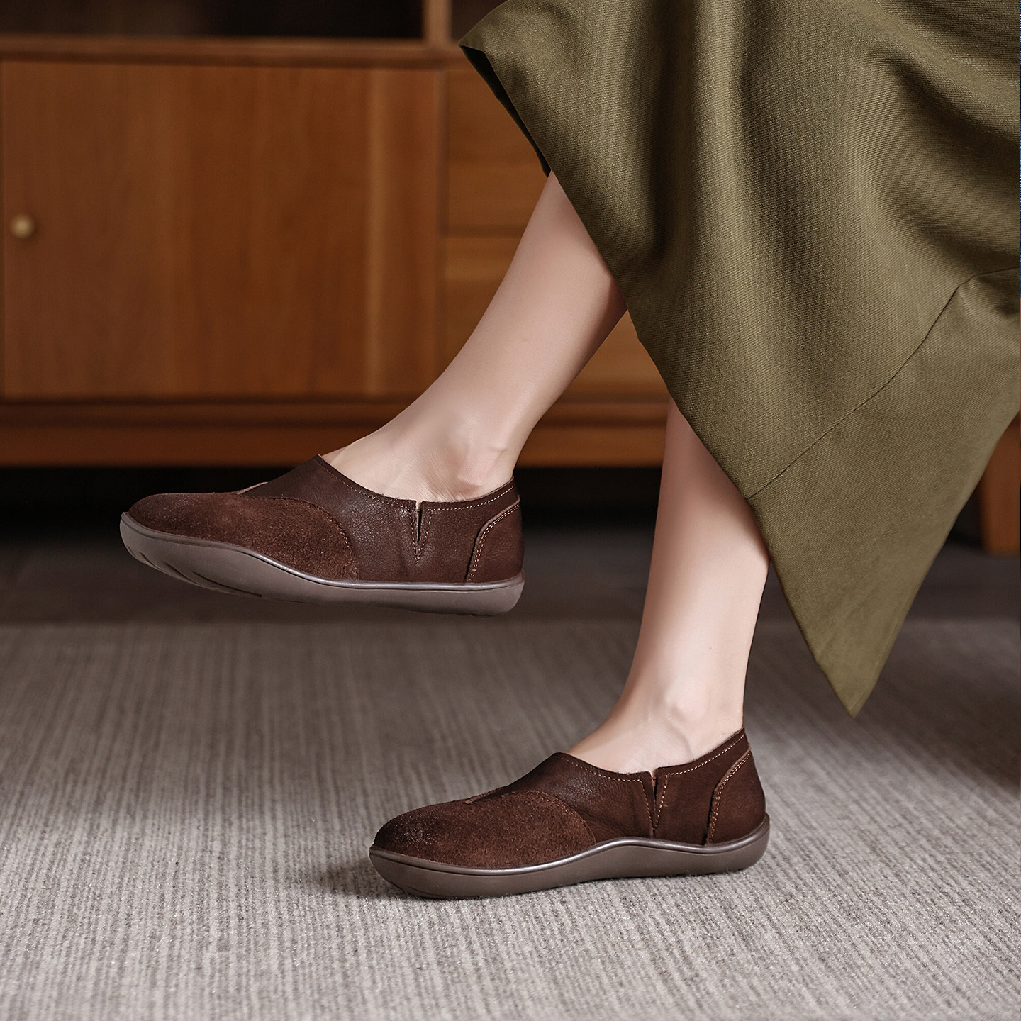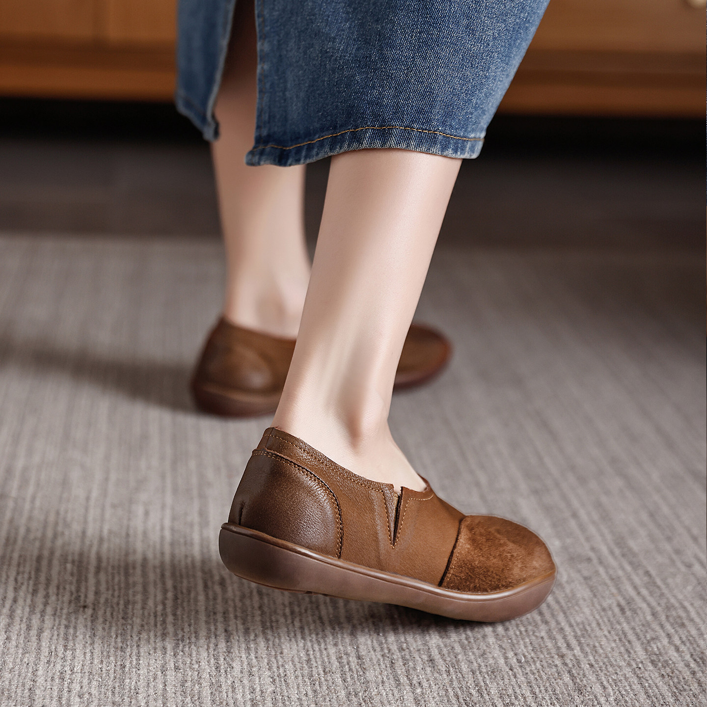 头层牛皮透气软底不累脚轻便妈妈单鞋2025秋季新款平底休闲板鞋女