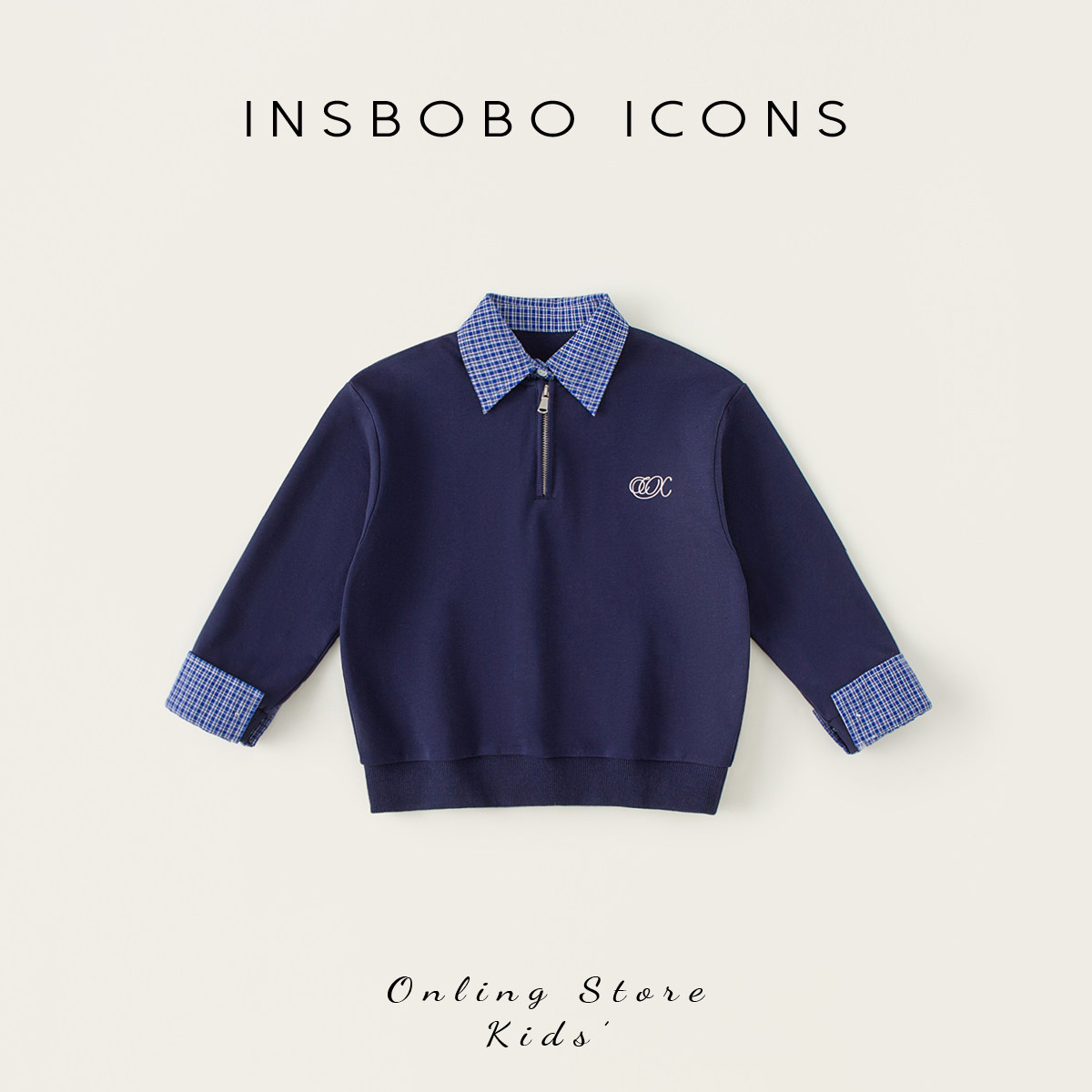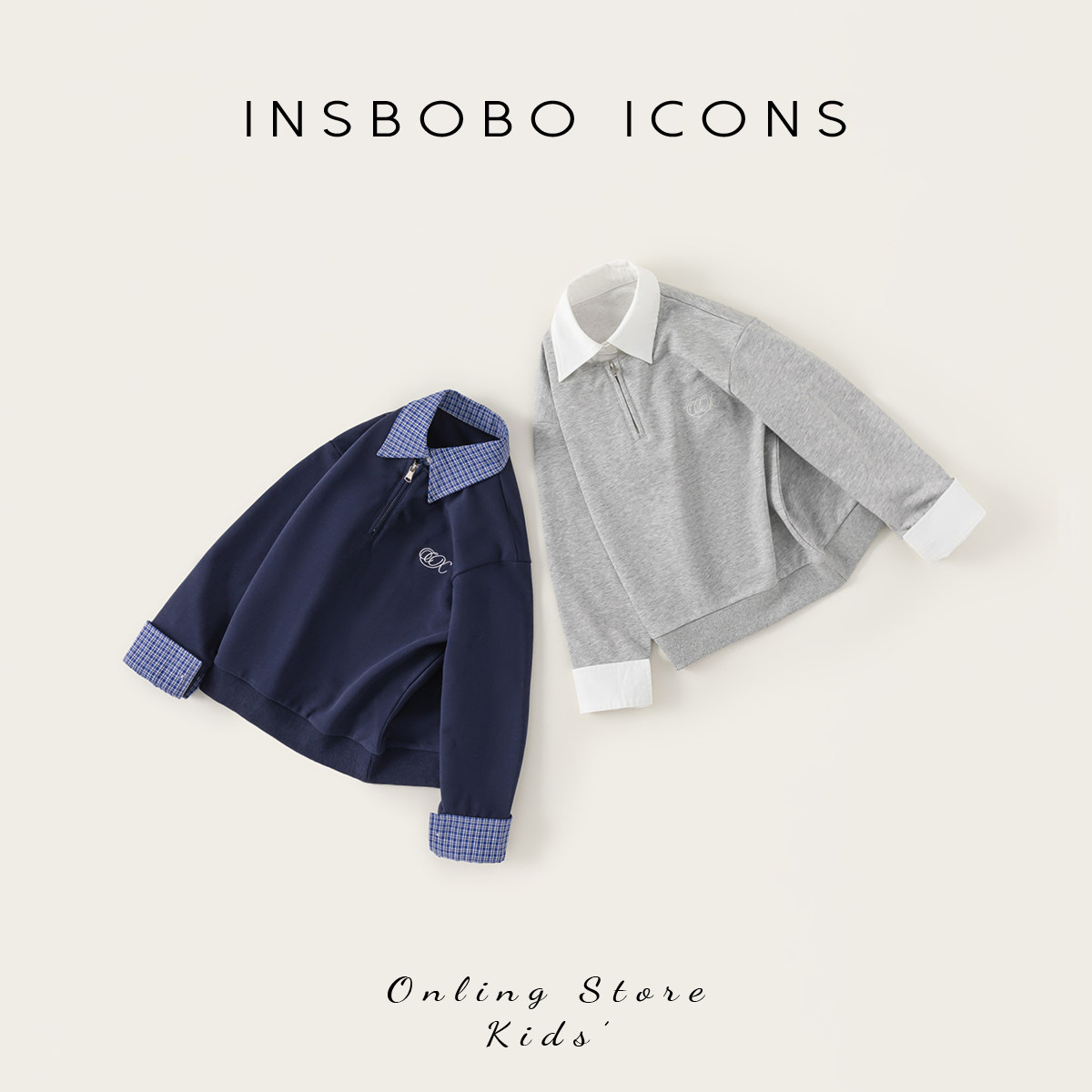 INSbobo童装2026春秋新款儿童上衣男女童假两件中大童长袖上衣