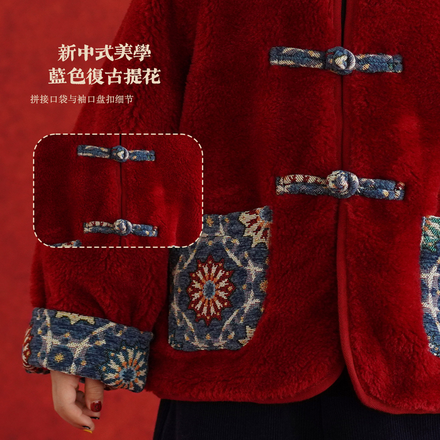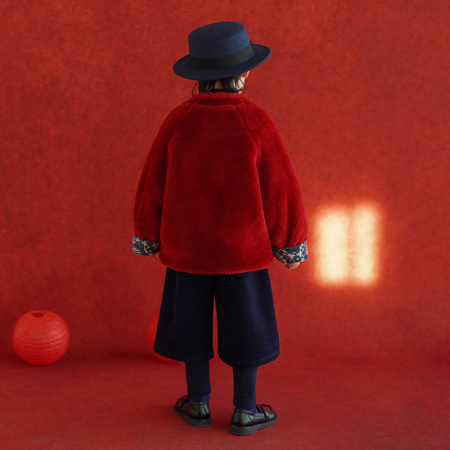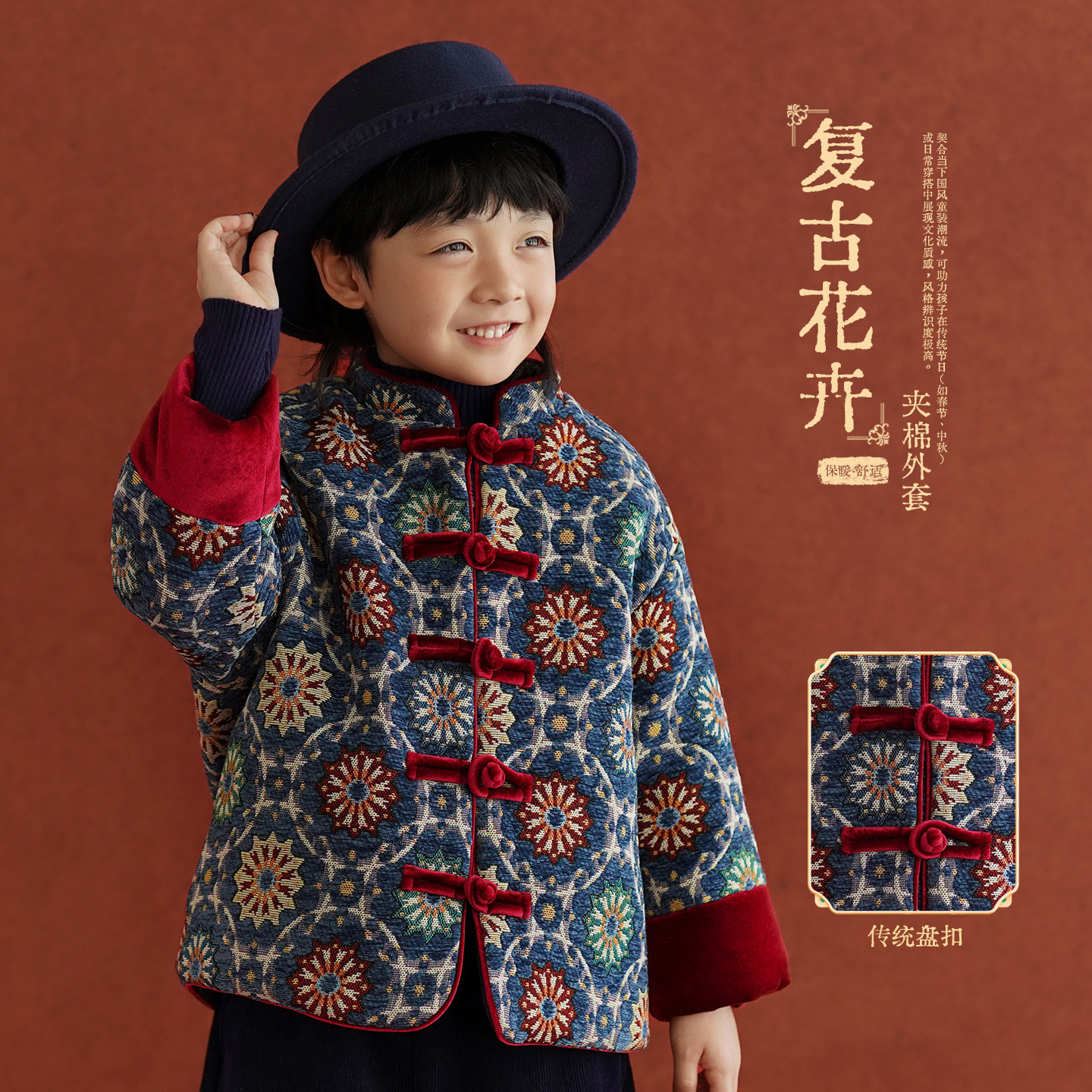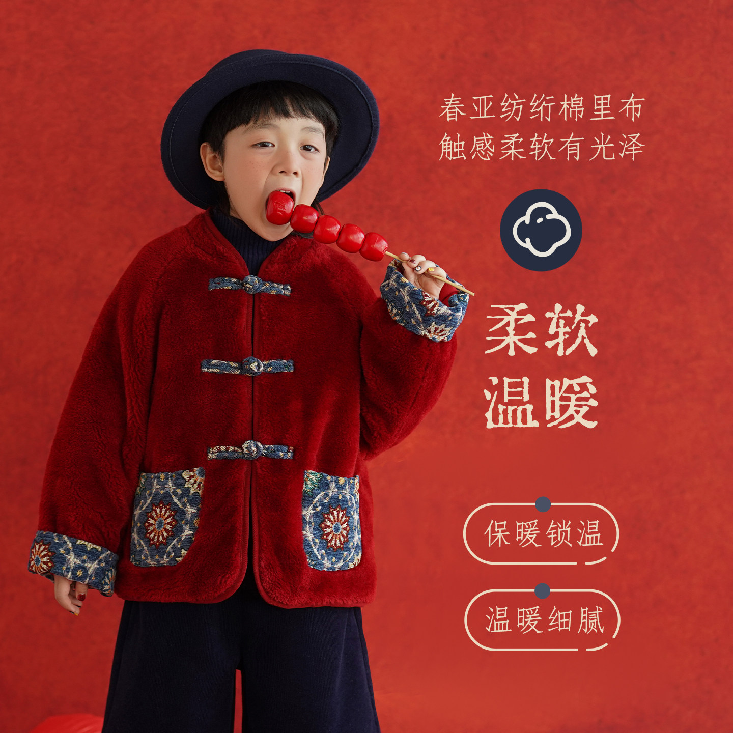 砚台家童装男童新中式红色夹棉外套冬装拜年服儿童中国风新年衣服