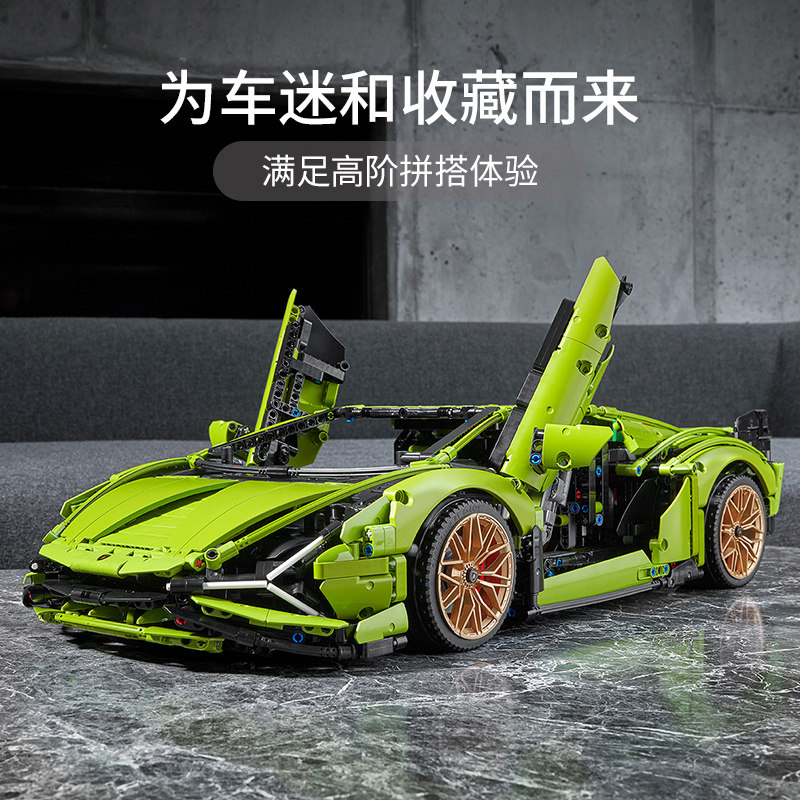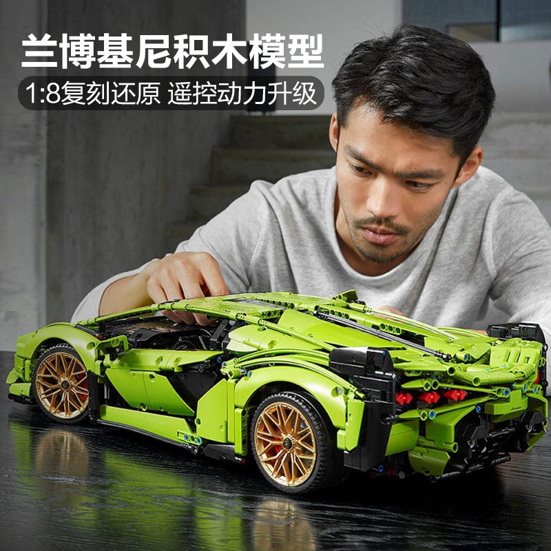 兰博基尼绿牛跑车积木汽车拼装模型成人高难度男孩玩具儿童礼物