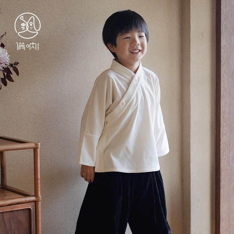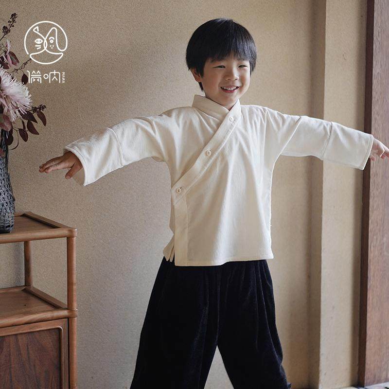 满呐推荐原创汉服斜襟交领打底中衣绒绒保暖长袖上衣男童年服