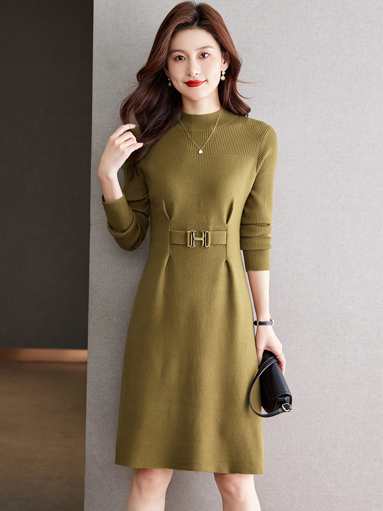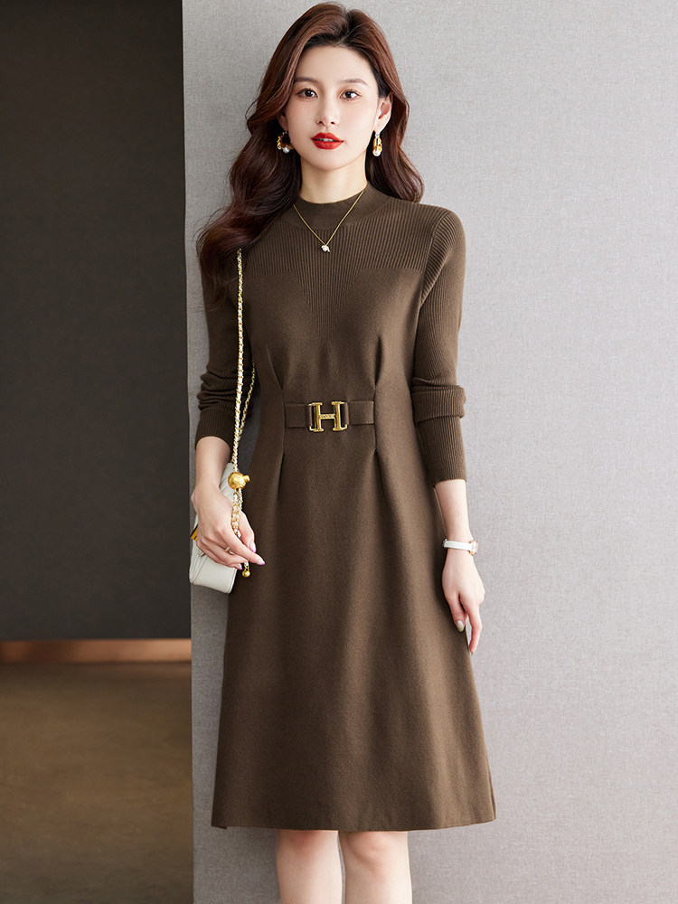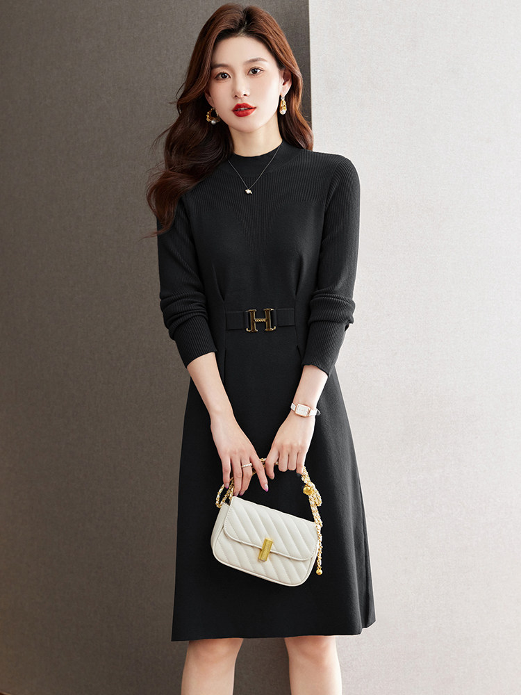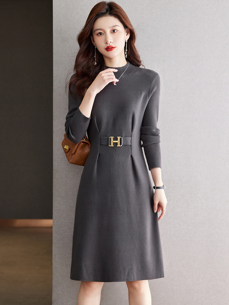 秋冬新款时尚羊毛针织打底连衣裙小个子显瘦配大衣中长款毛衣裙
