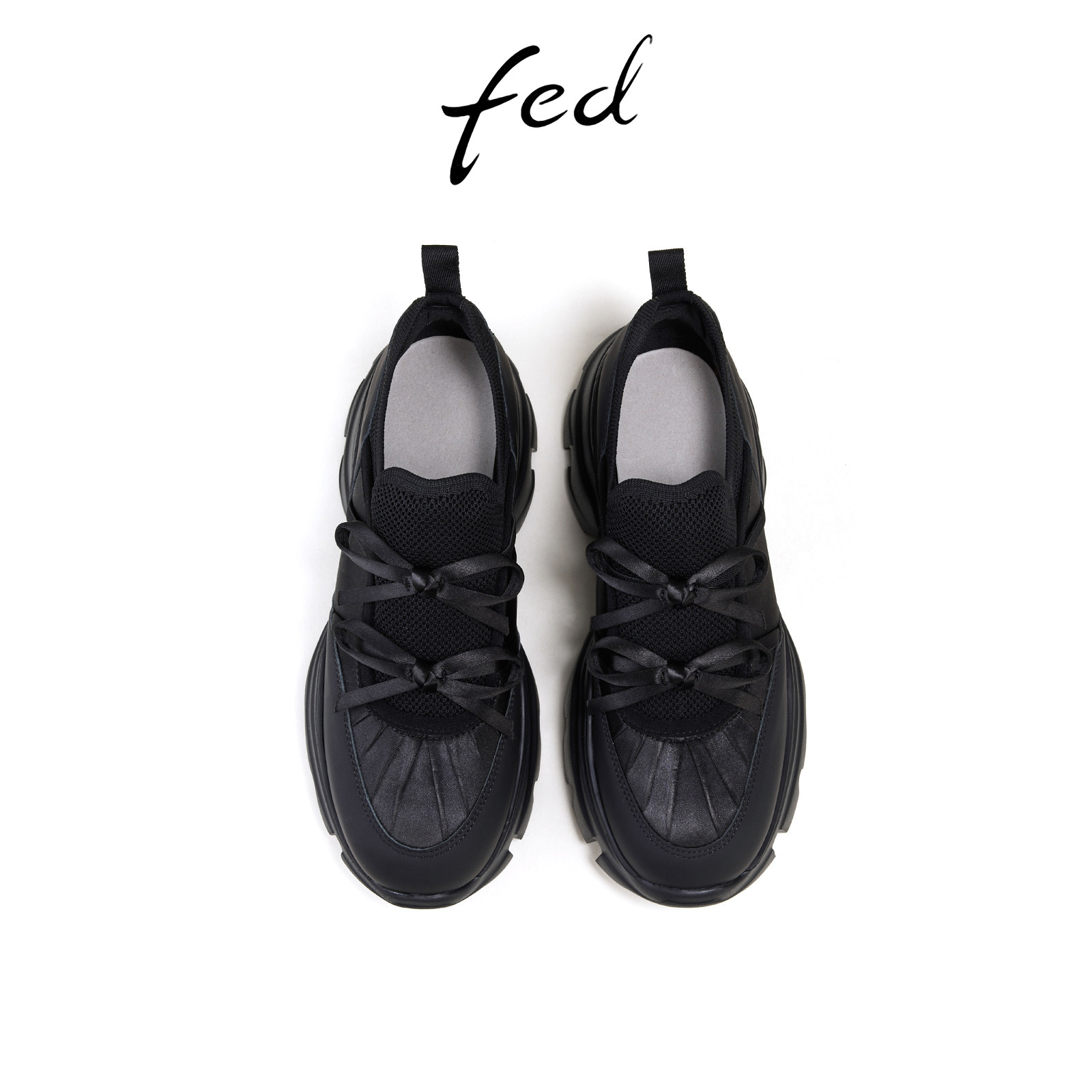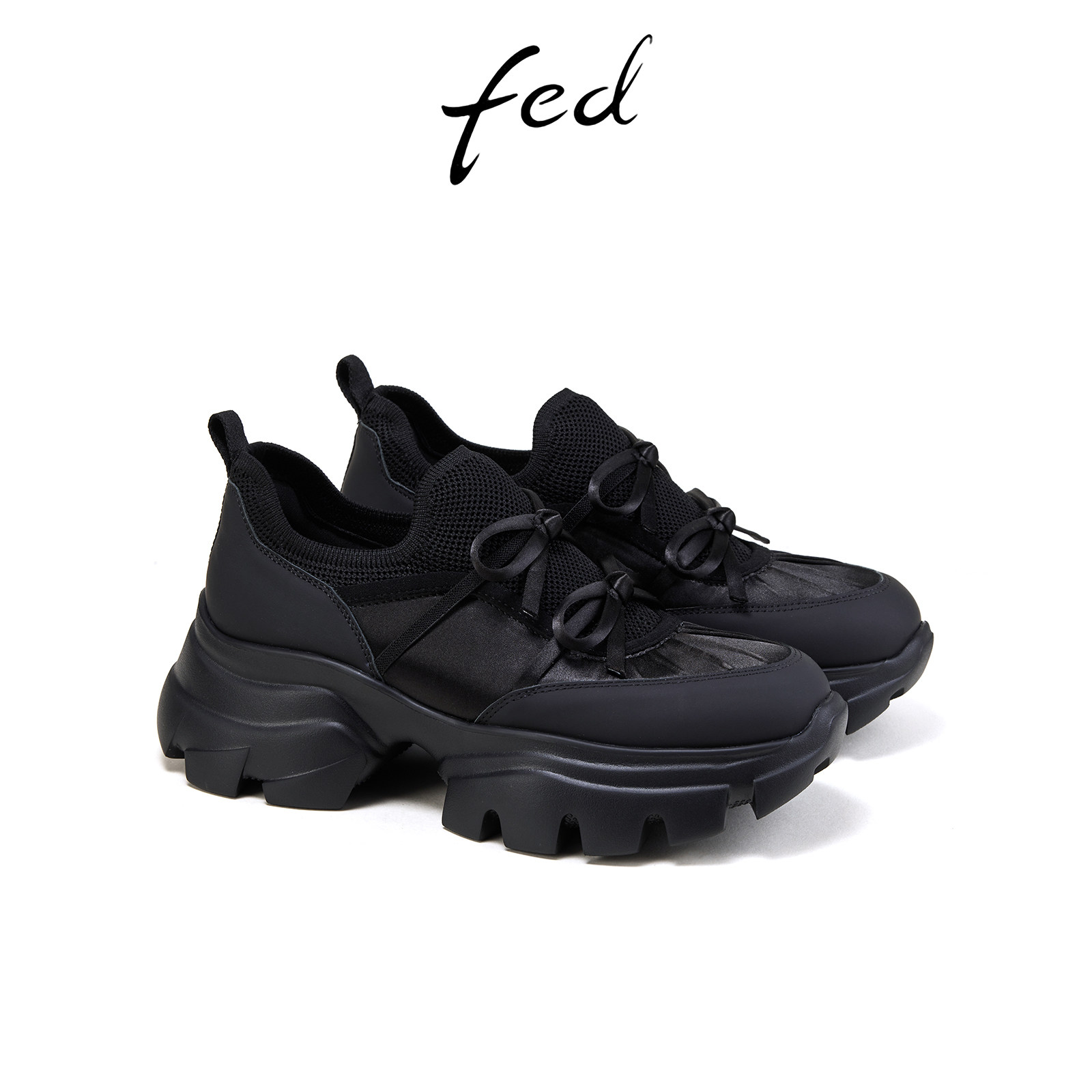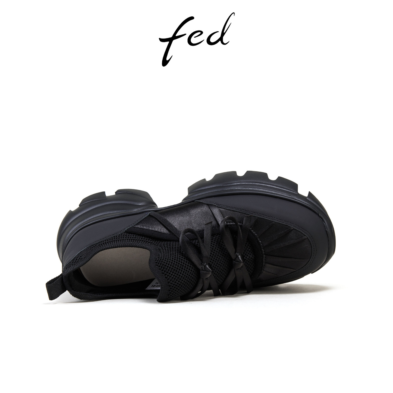 fed黑色运动鞋夏季新款女鞋厚底增高鞋透气老爹鞋女款S0425-YA622
