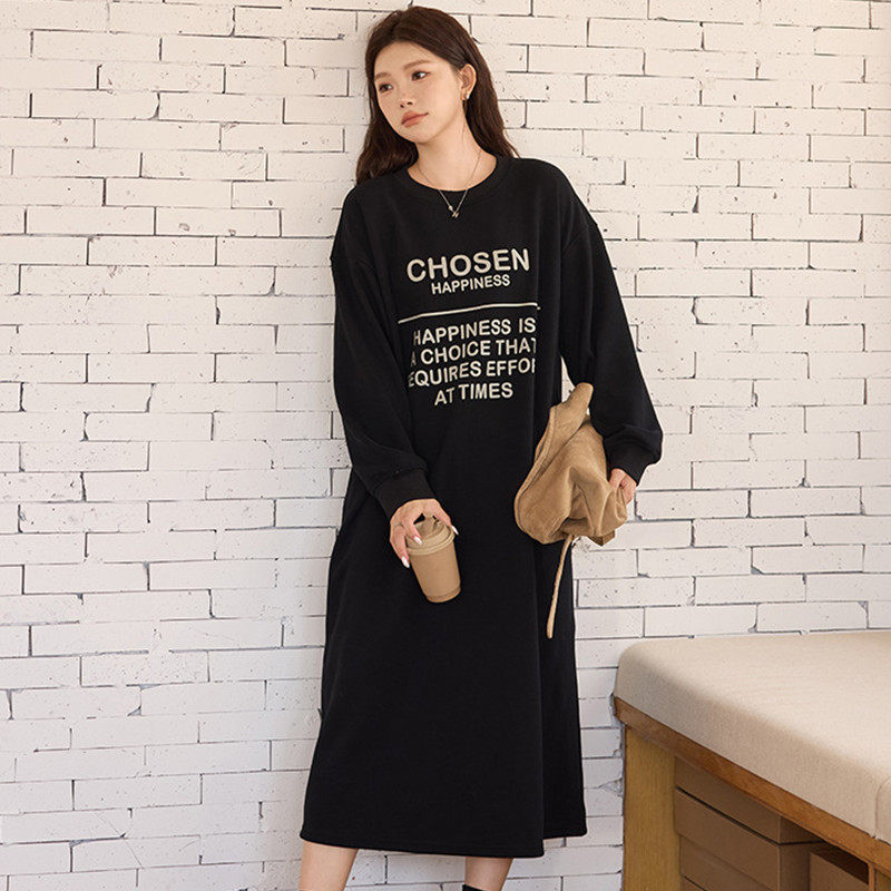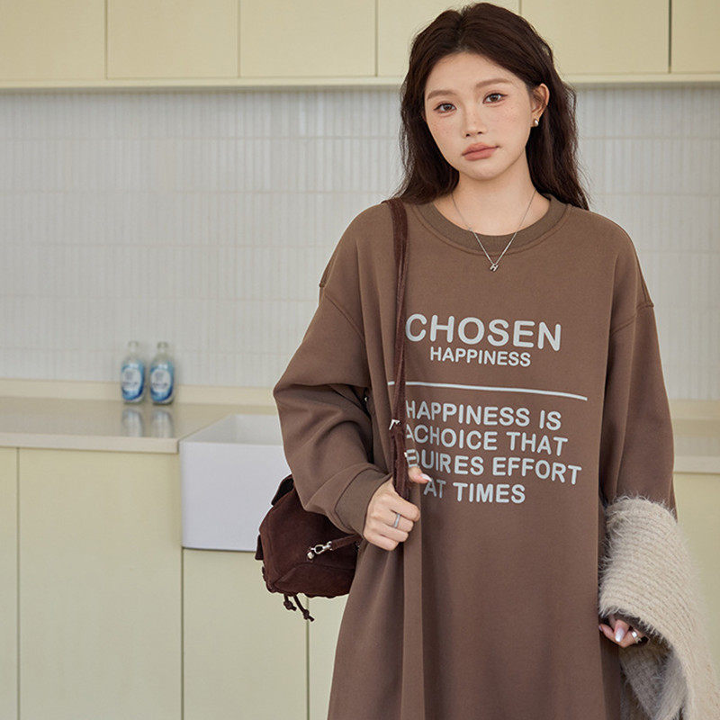 大码卫衣裙长款过膝宽松胖mm加厚加绒女士秋冬季新款巨显瘦连衣裙