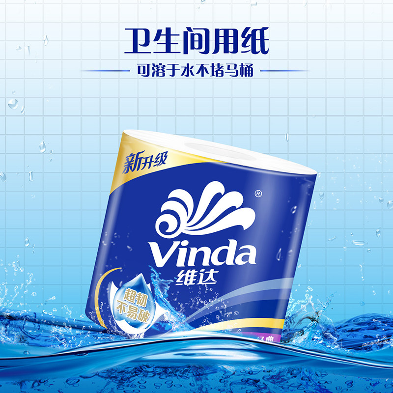 维达卷纸20/30卷有芯卷筒纸手纸可溶解厕纸4层可溶水家庭装卫生纸
