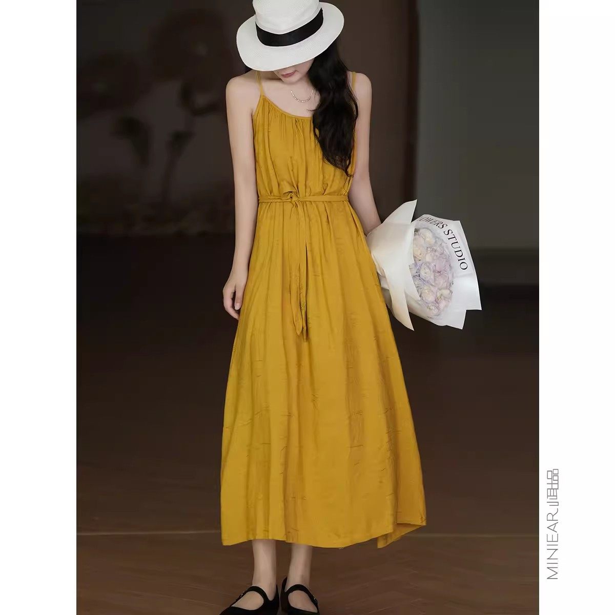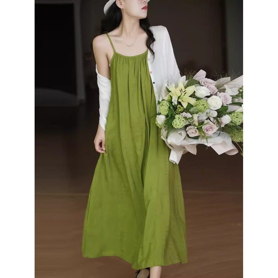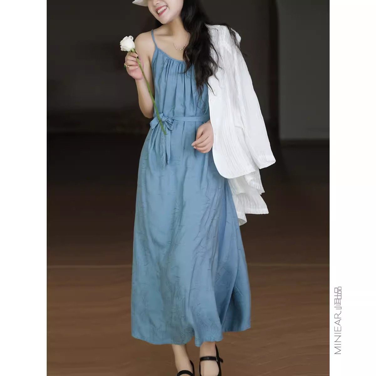 大码海边度假无袖吊带裙女夏季新中式国风提花连衣裙显瘦气质长裙