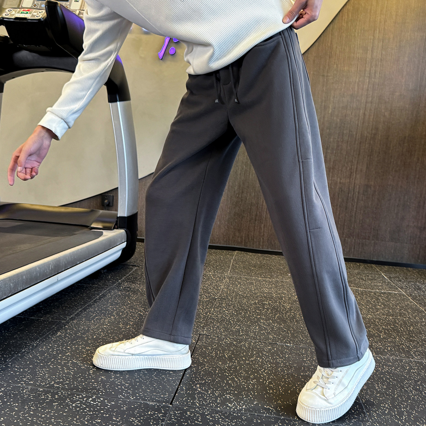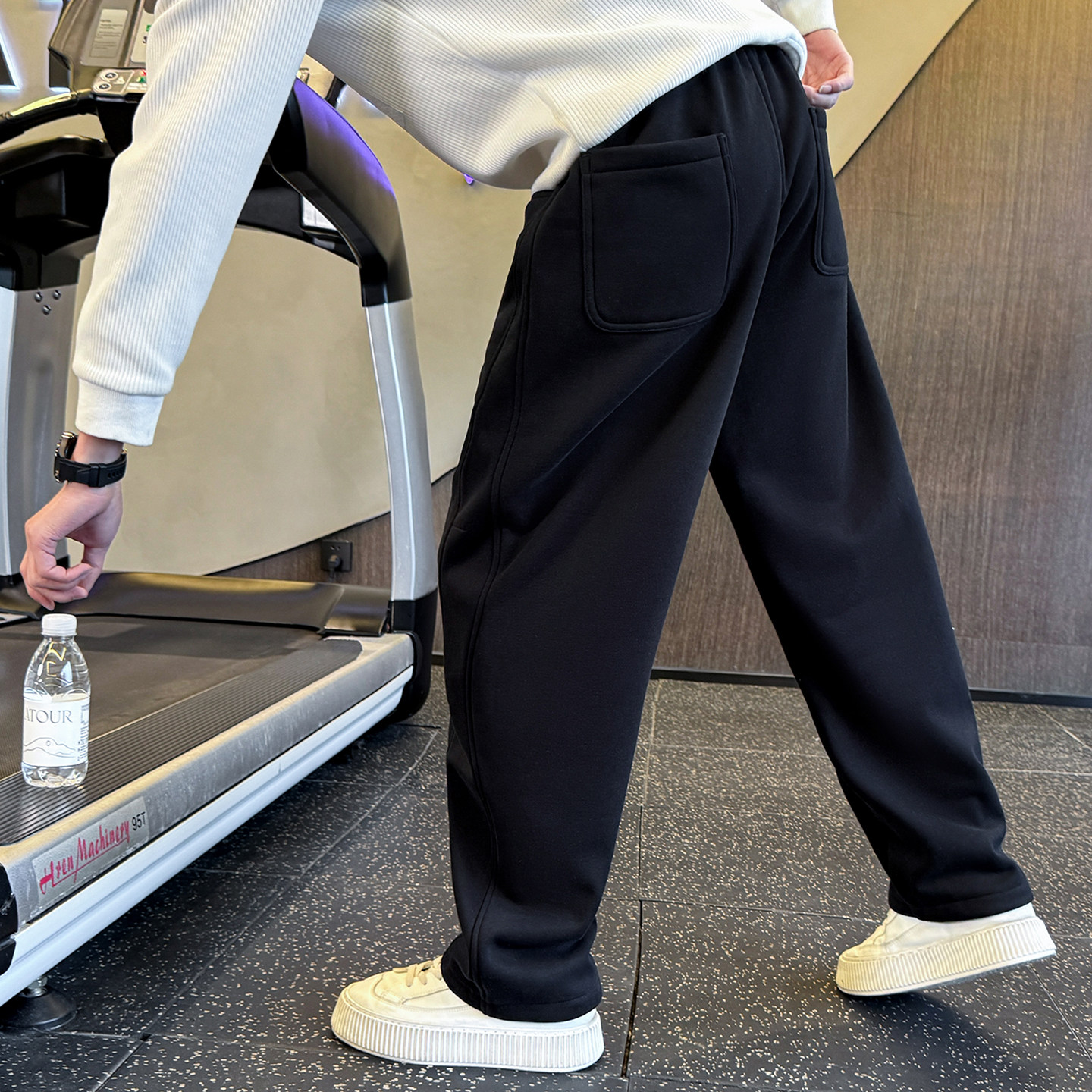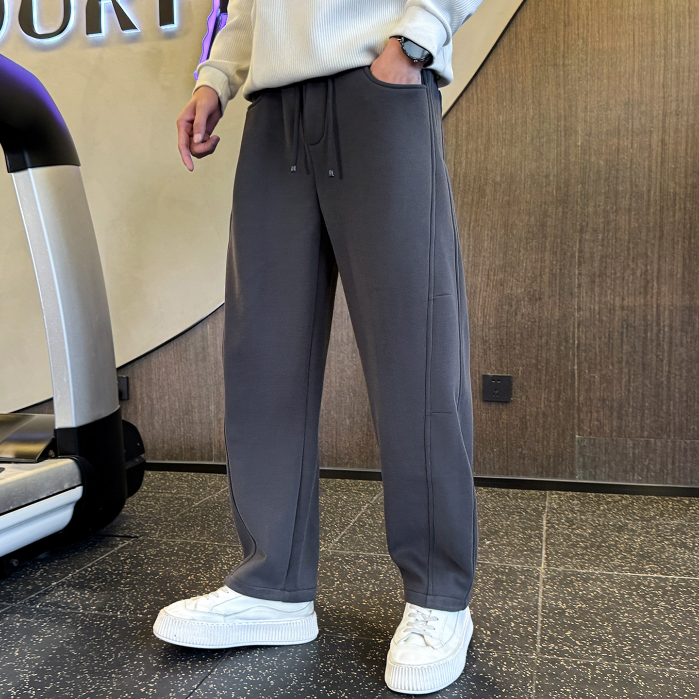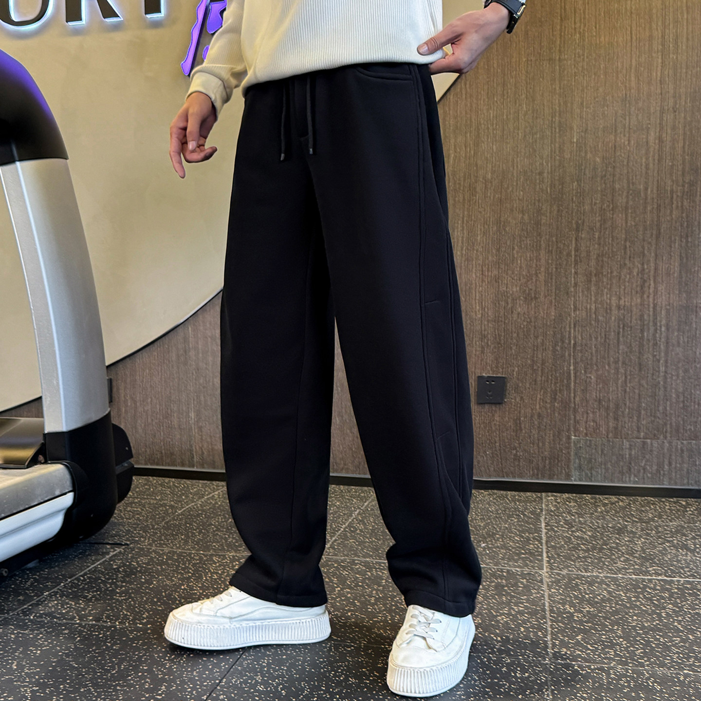 311线报网描述:美式休闲男士弯刀裤,秋冬加绒加厚运动长裤