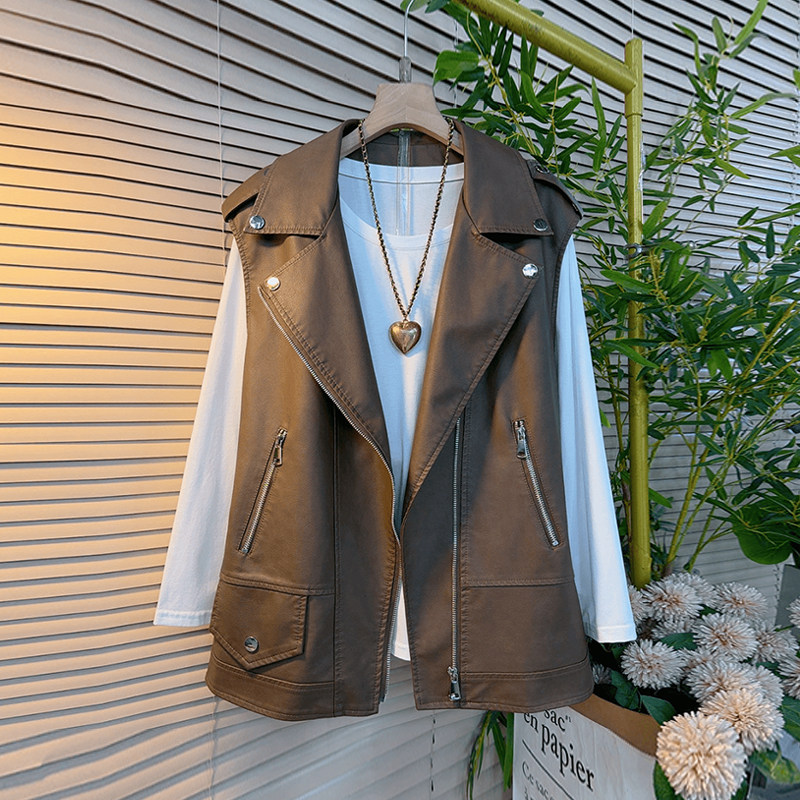 加肥大码女装翻领开衫皮马甲胖妹妹2026早春新款简约长袖圆领小衫