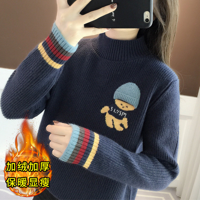 毛衣女款2025新款冬季针织上衣女小个子内搭加绒加厚打底衫女秋冬