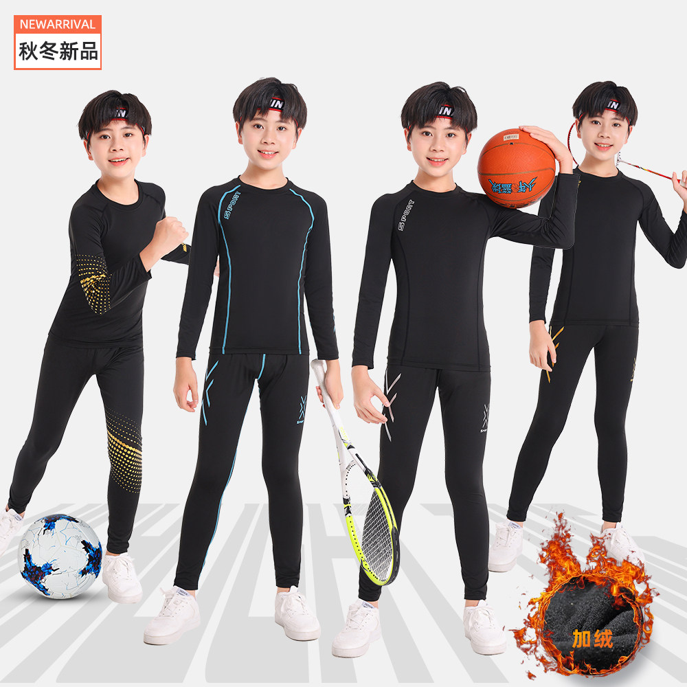 儿童紧身衣足球训练服秋冬体能长袖篮球服打底速干男女童运动套装