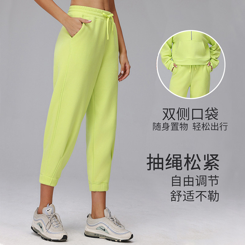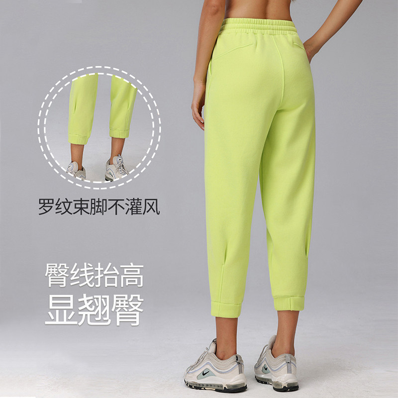保暖加绒小个子运动裤女秋冬新款直筒修身休闲外穿中长七分卫裤