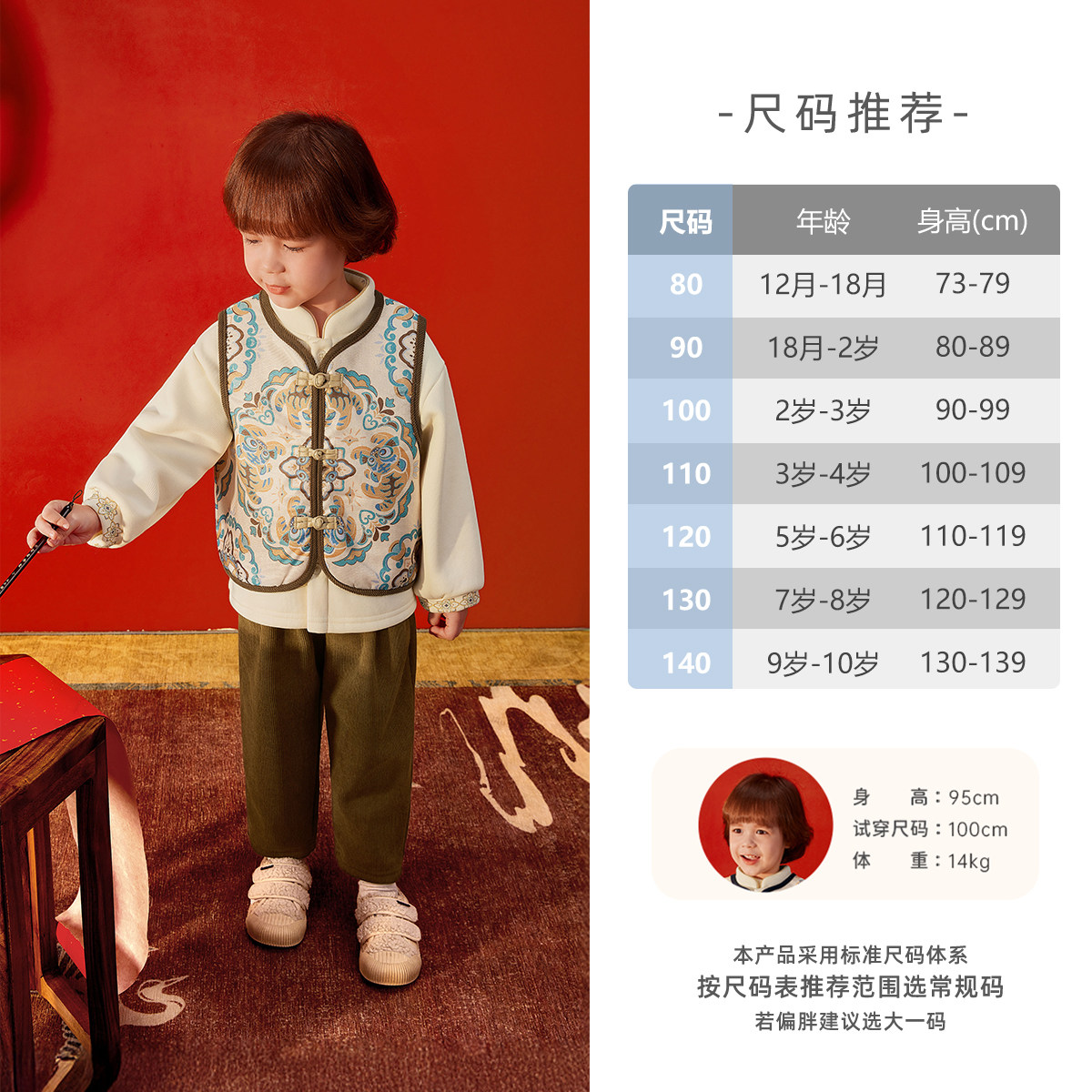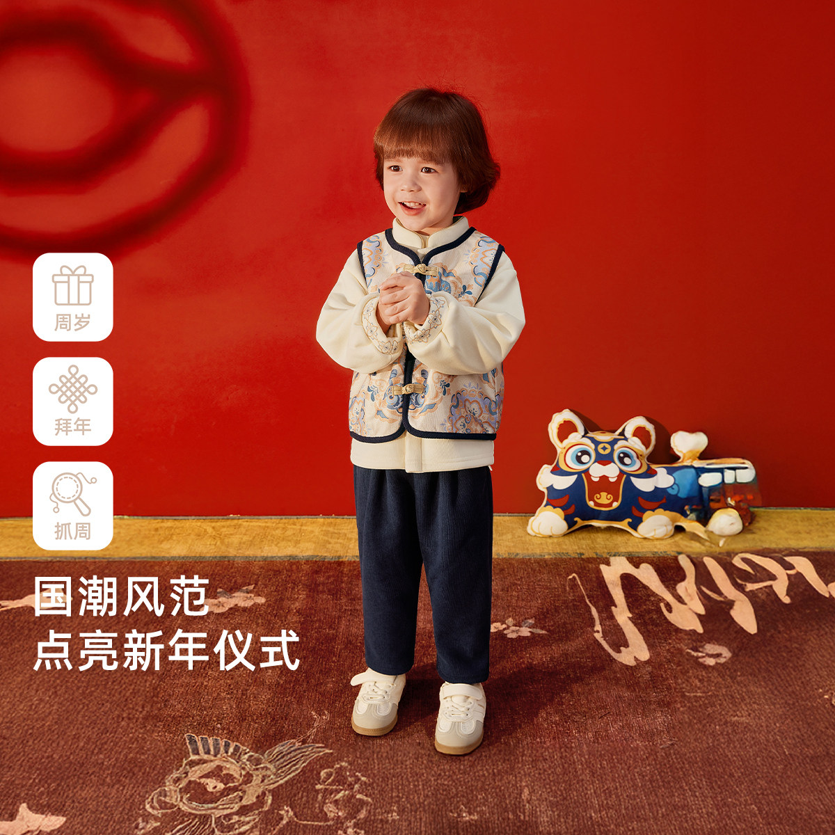 [2026新年款]男童拜年套装新中式马甲国风唐装三件套加绒新年服