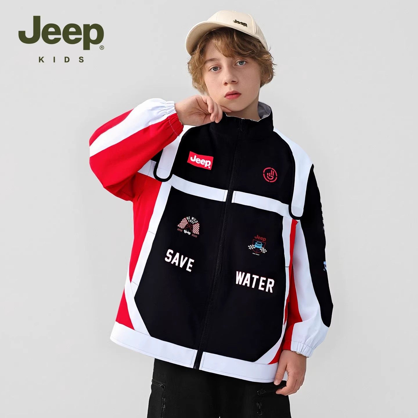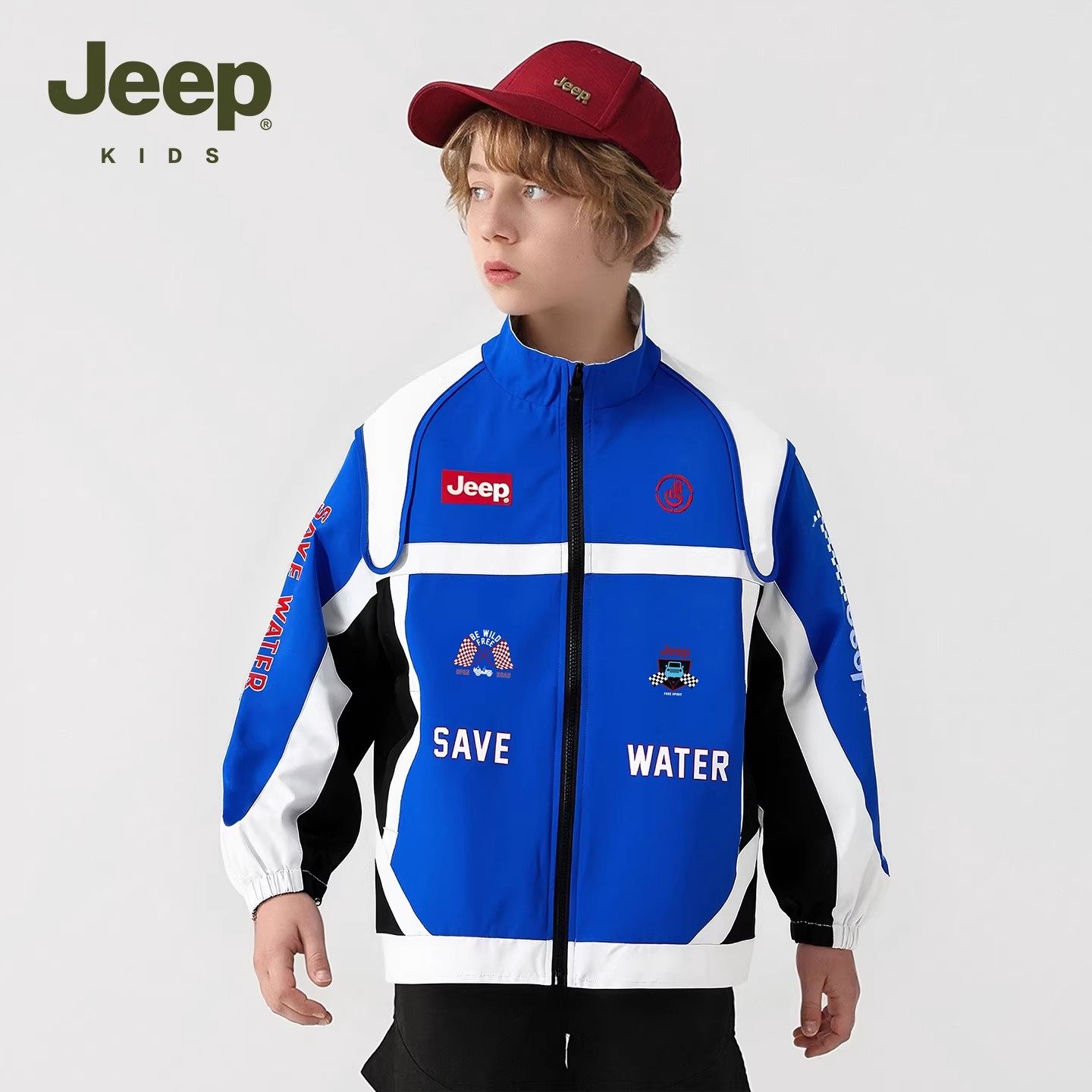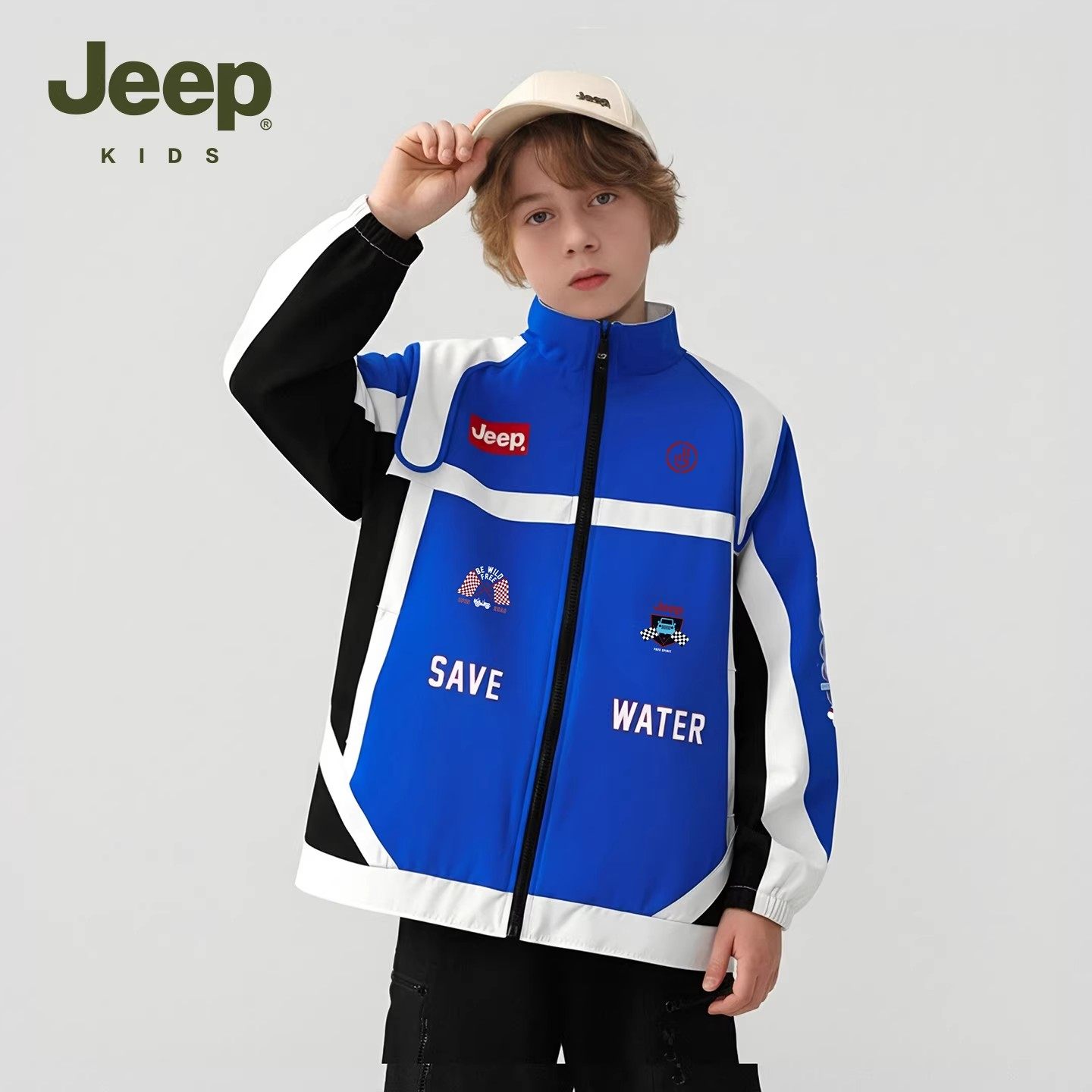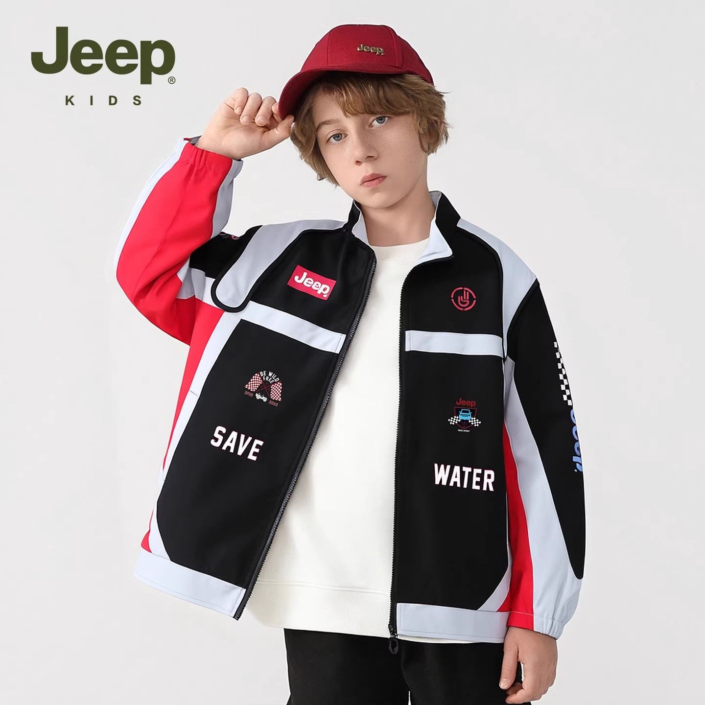 Jeep童装儿童外套2026年春季新款男童撞色防风夹克潮酷女童赛车服
