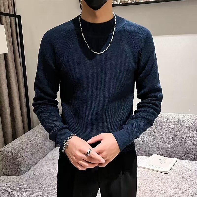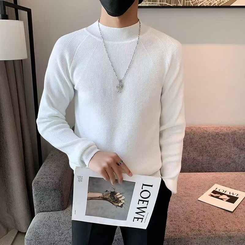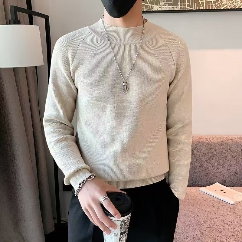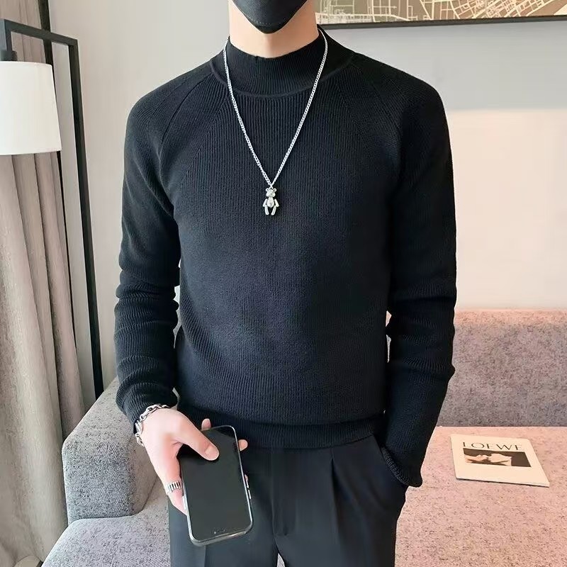 半高领毛衣男款士秋冬季加大加厚保暖修身中领黑色针织打底衫内搭
