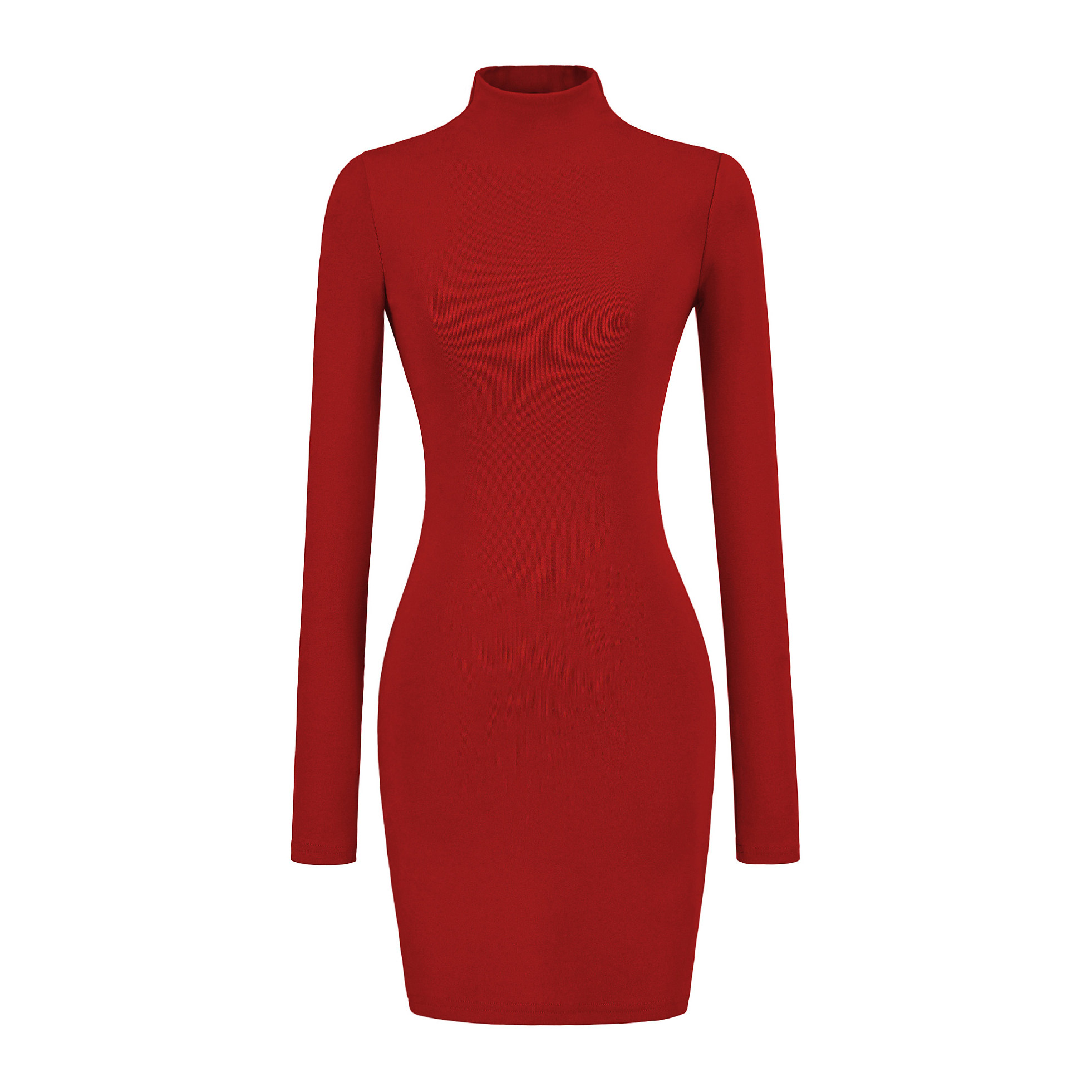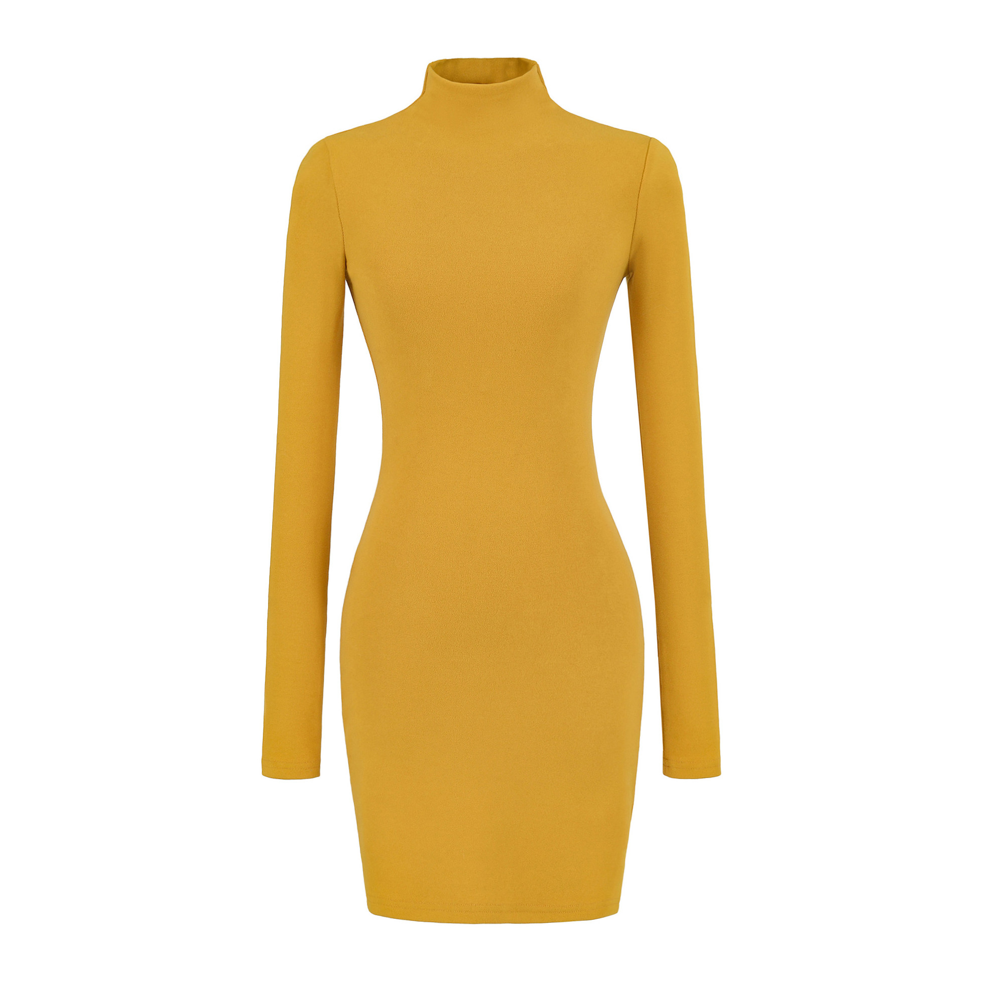 辣妹半高领长袖针织连衣裙女秋冬季弹力修身显瘦显瘦包臀打底短裙