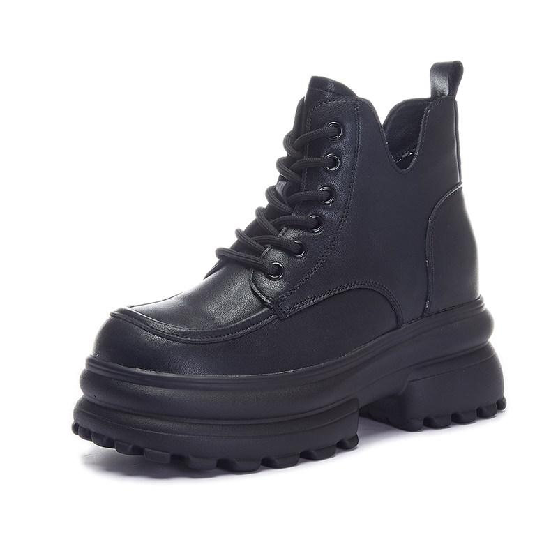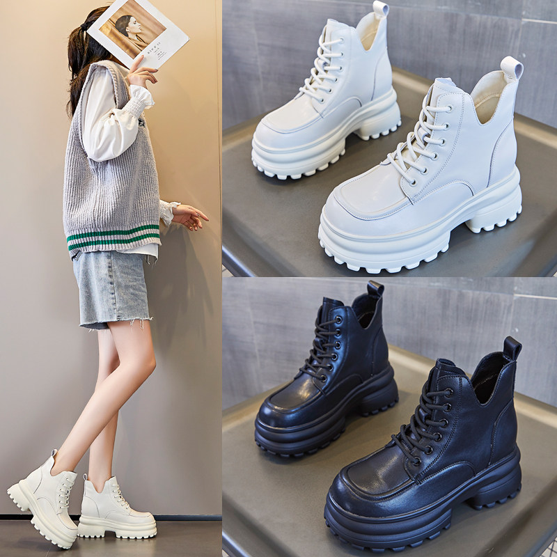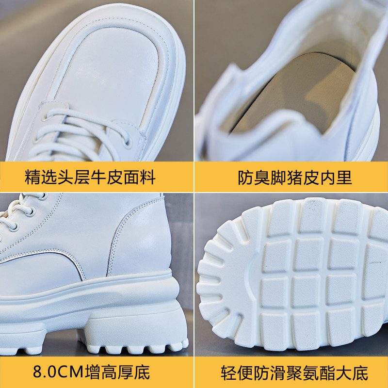 真皮内增高马丁靴女英伦风2025年春秋新款厚底松糕短靴小个子8CM