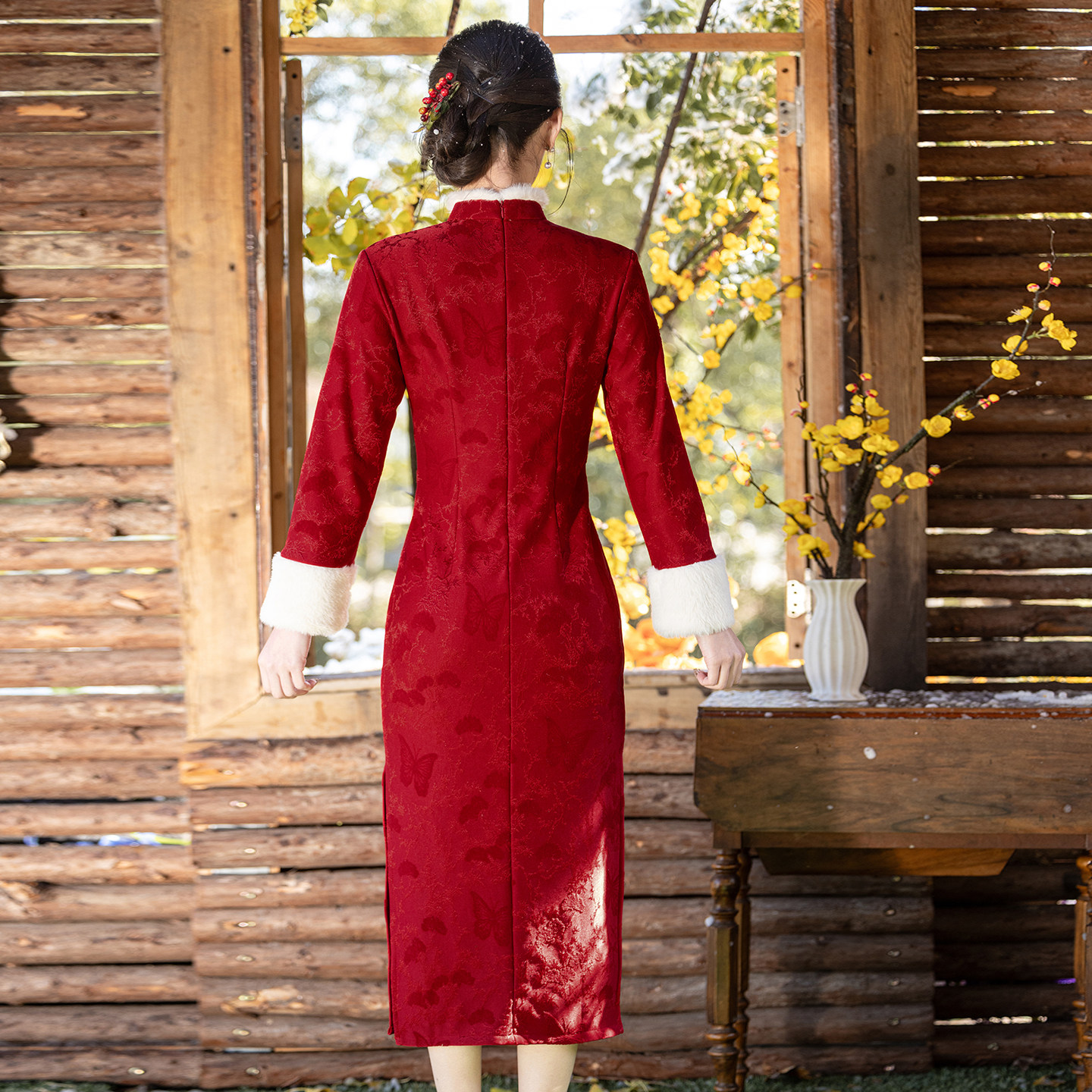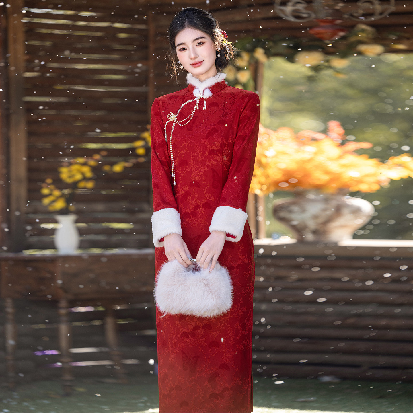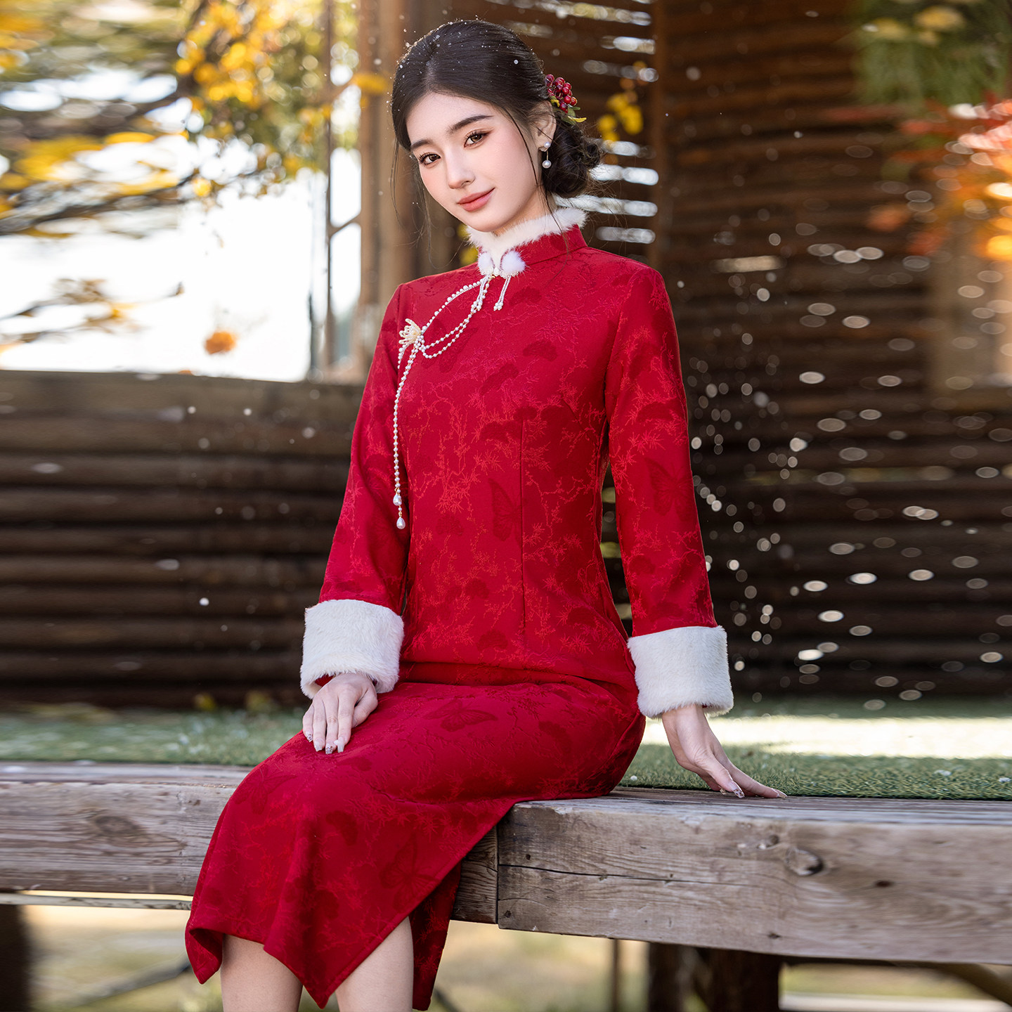 冬款旗袍长袖加绒加厚2025新款红色过年小袄拜年服改良连衣裙优雅