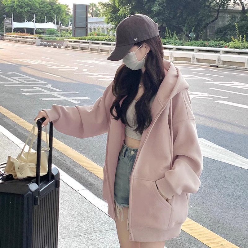 连帽卫衣女2025新款秋冬季小个子宽松韩系慵懒风加绒加厚开衫外套
