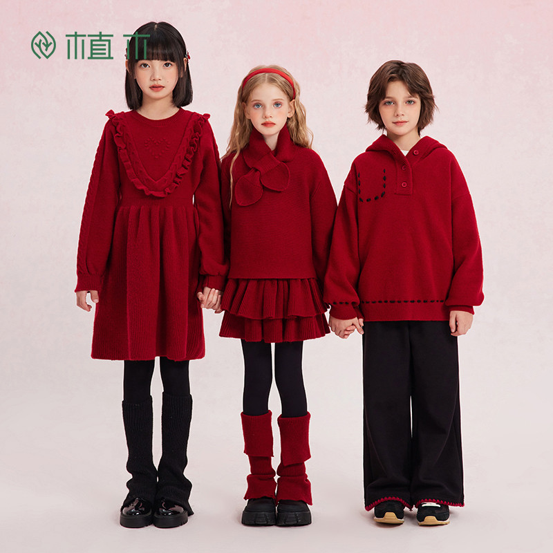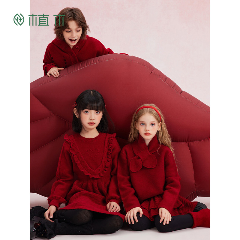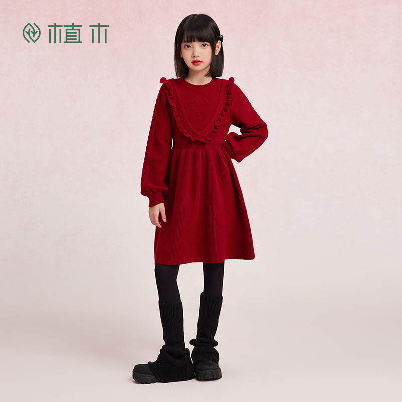 植木童装 儿童连衣裙2025秋冬新款中大童爱心针织连衣裙女童裙子