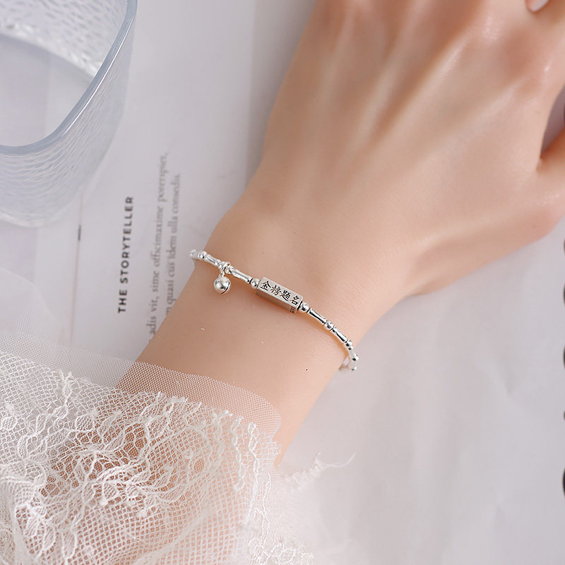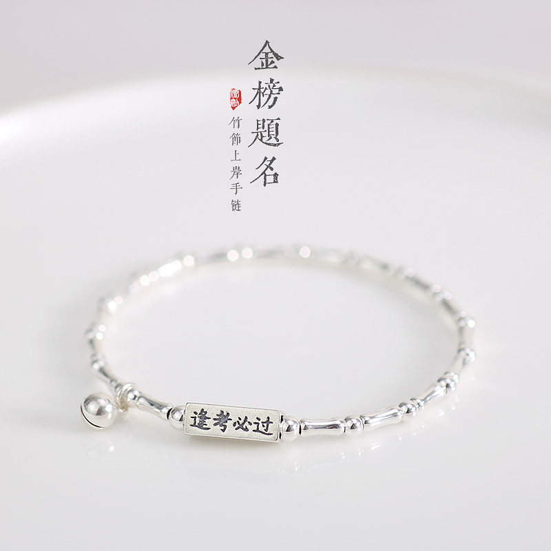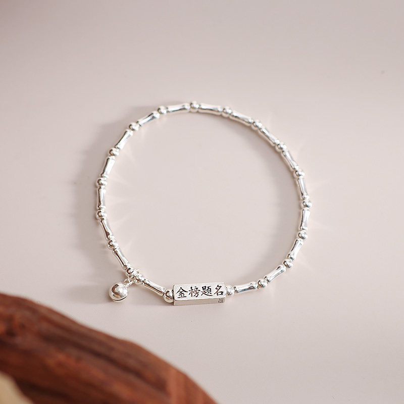 免费刻字竹节金榜题名手链女纯银小众设计感铃铛学生闺蜜手串礼物