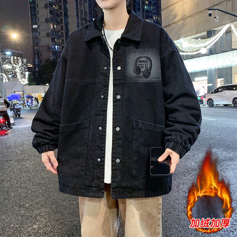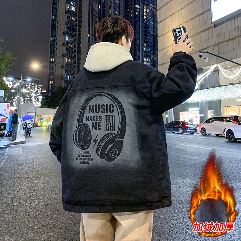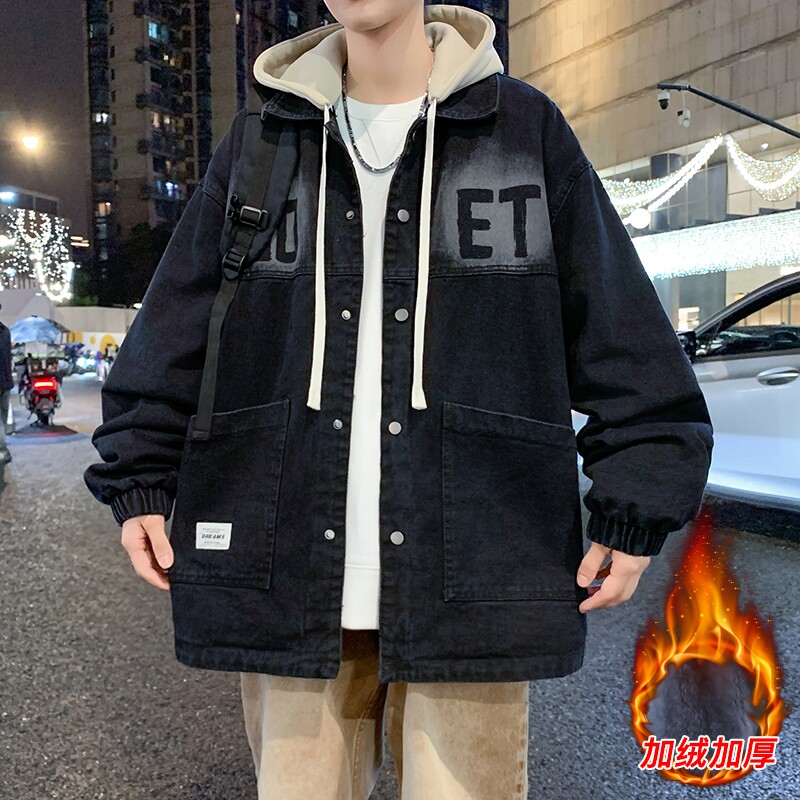 牛仔外套青少年2025新款宽松连帽加绒加厚初高中学生夹克帅气上衣