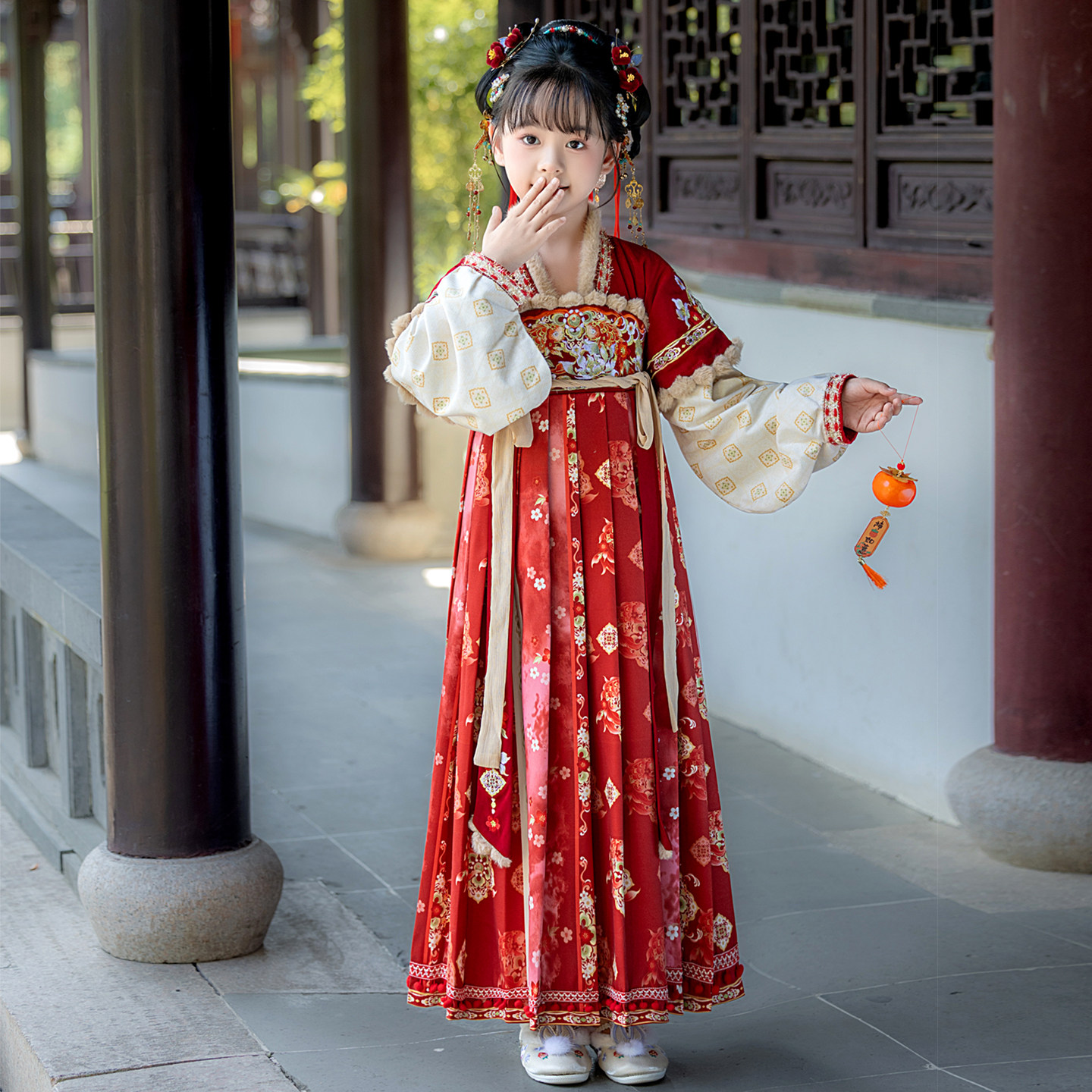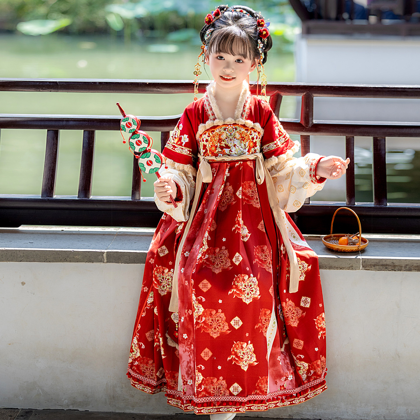 汉服女童2026冬季新款加厚加绒中国风古装拜年服小女孩唐装连衣裙