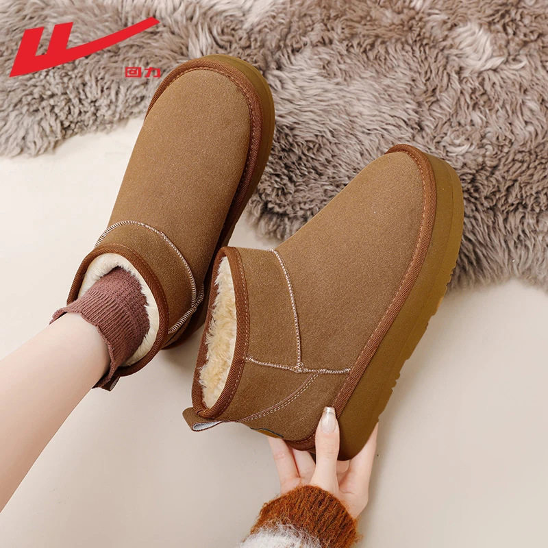 回力品牌正品鞋子女鞋雪地靴女款冬季加绒加厚皮毛一体厚底保暖雪