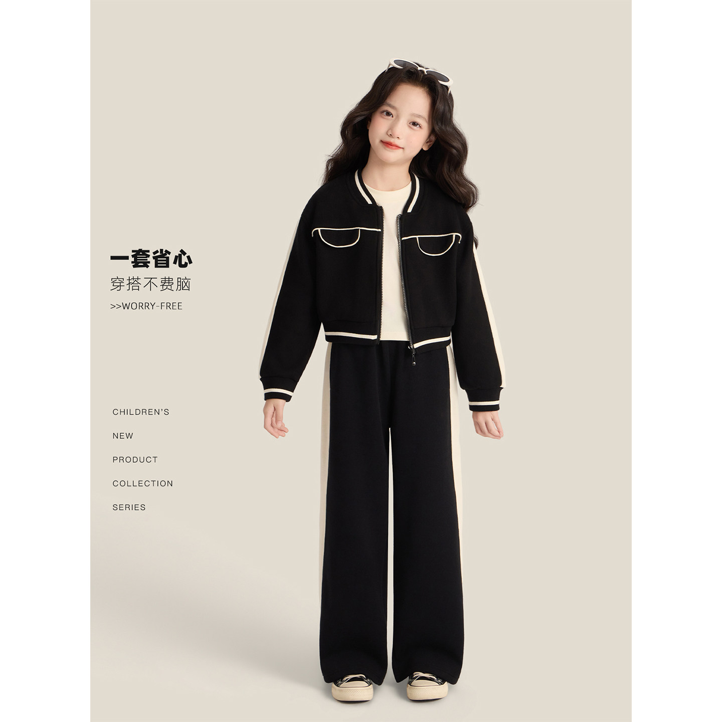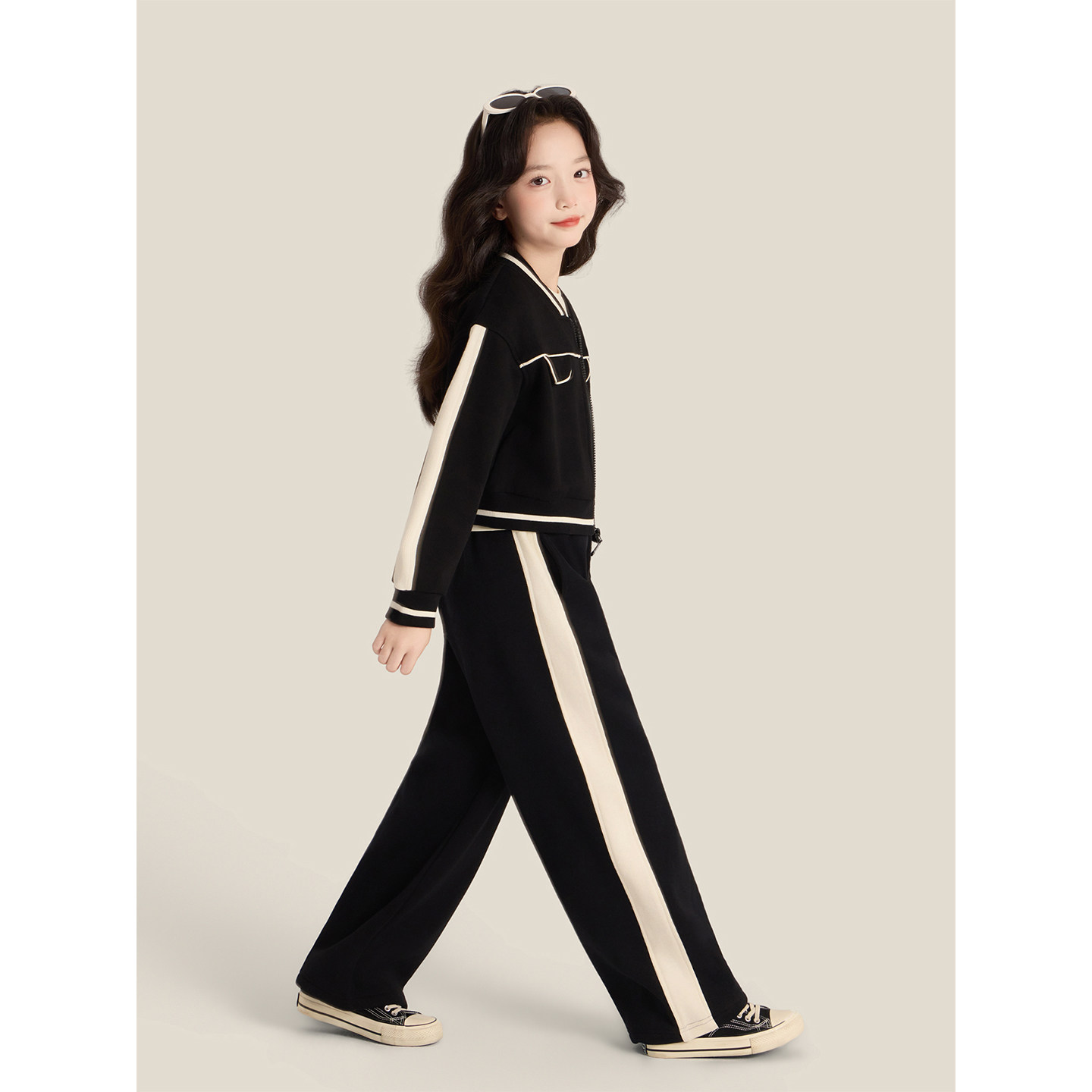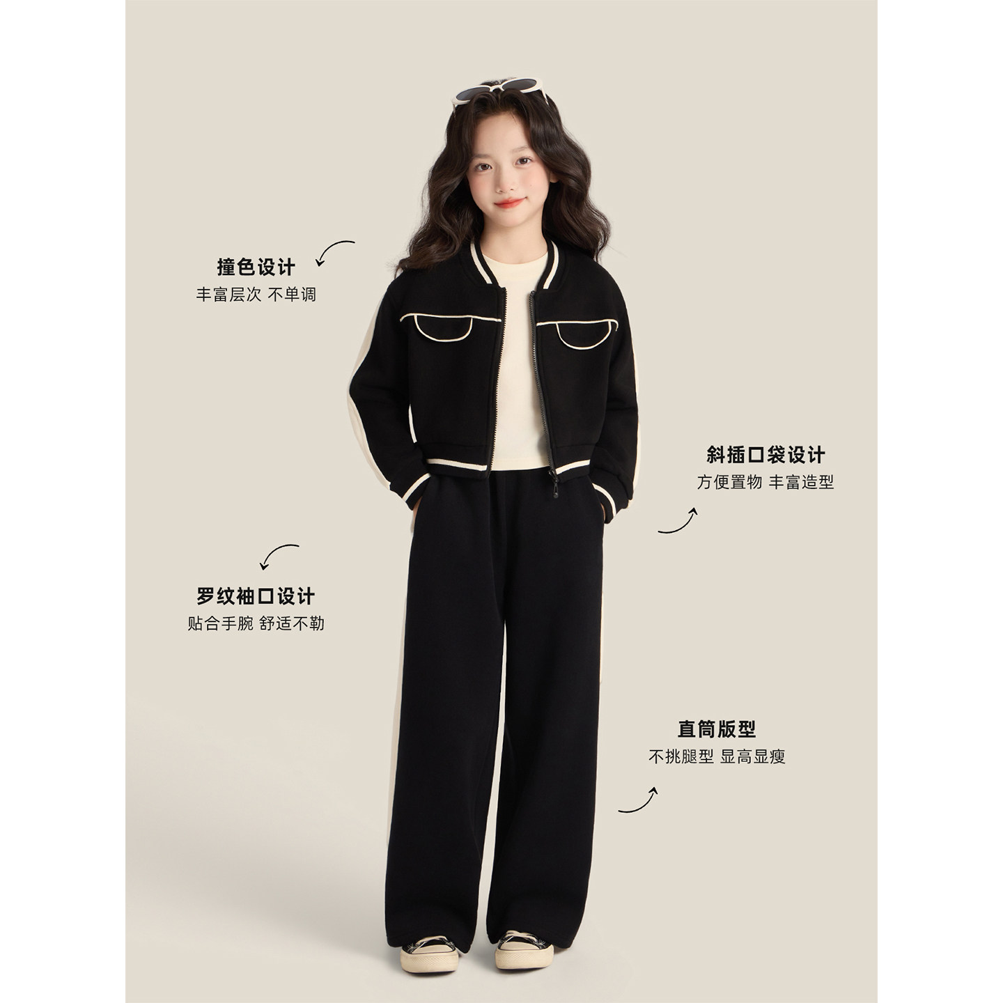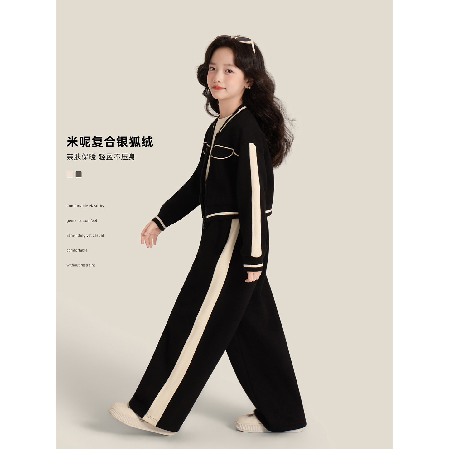 Amybaby女童套装冬季2025新款高级感休闲洋气撞色运动外套阔腿裤