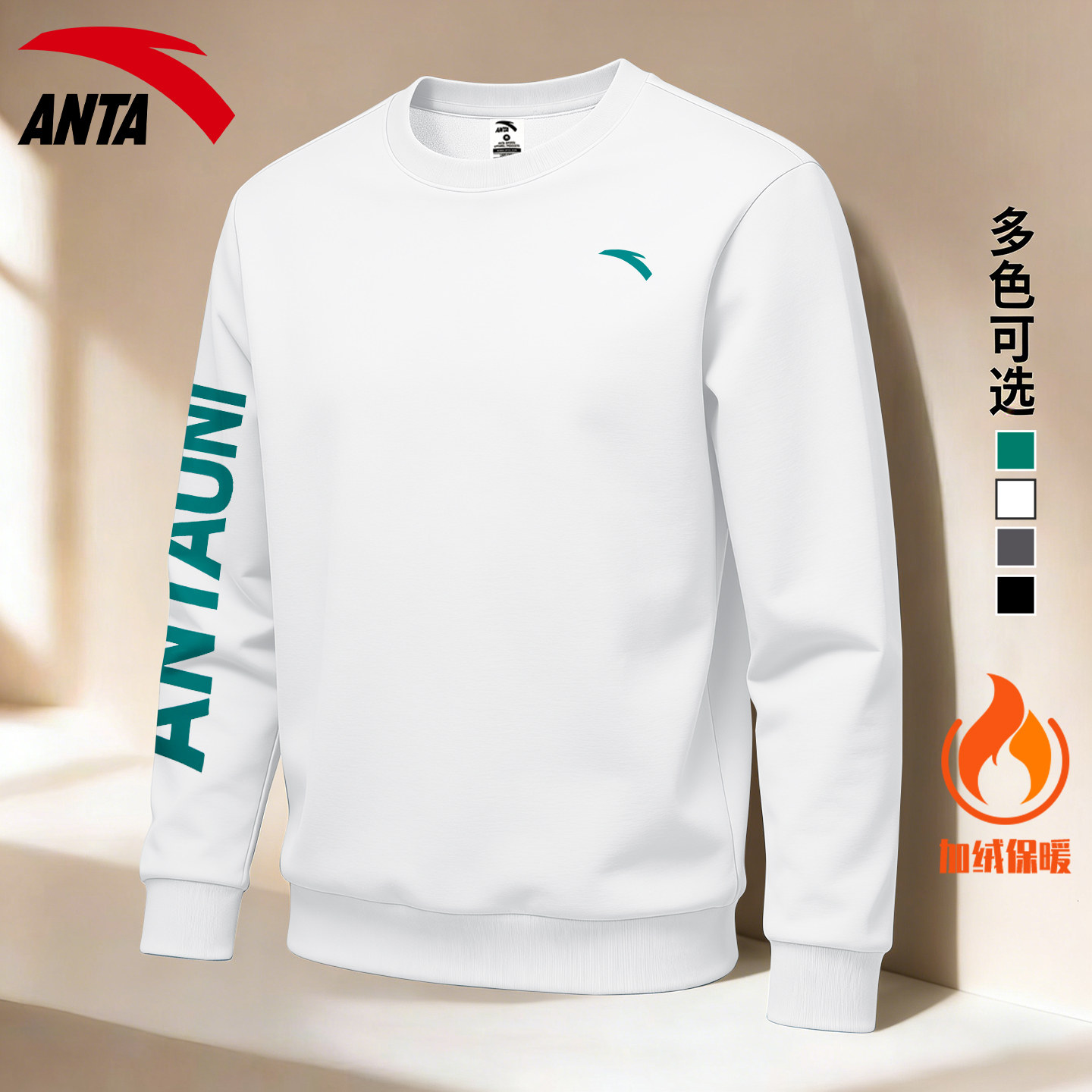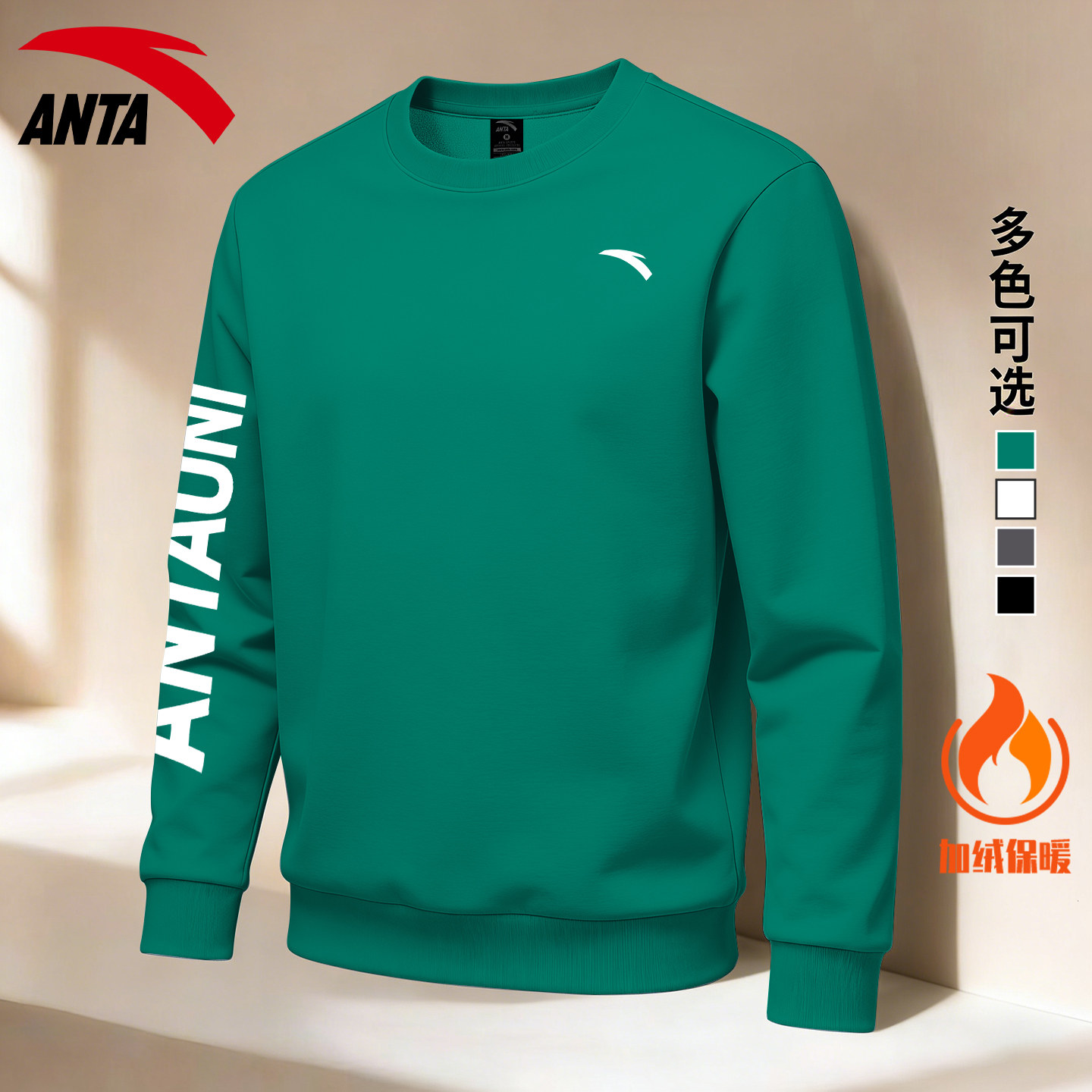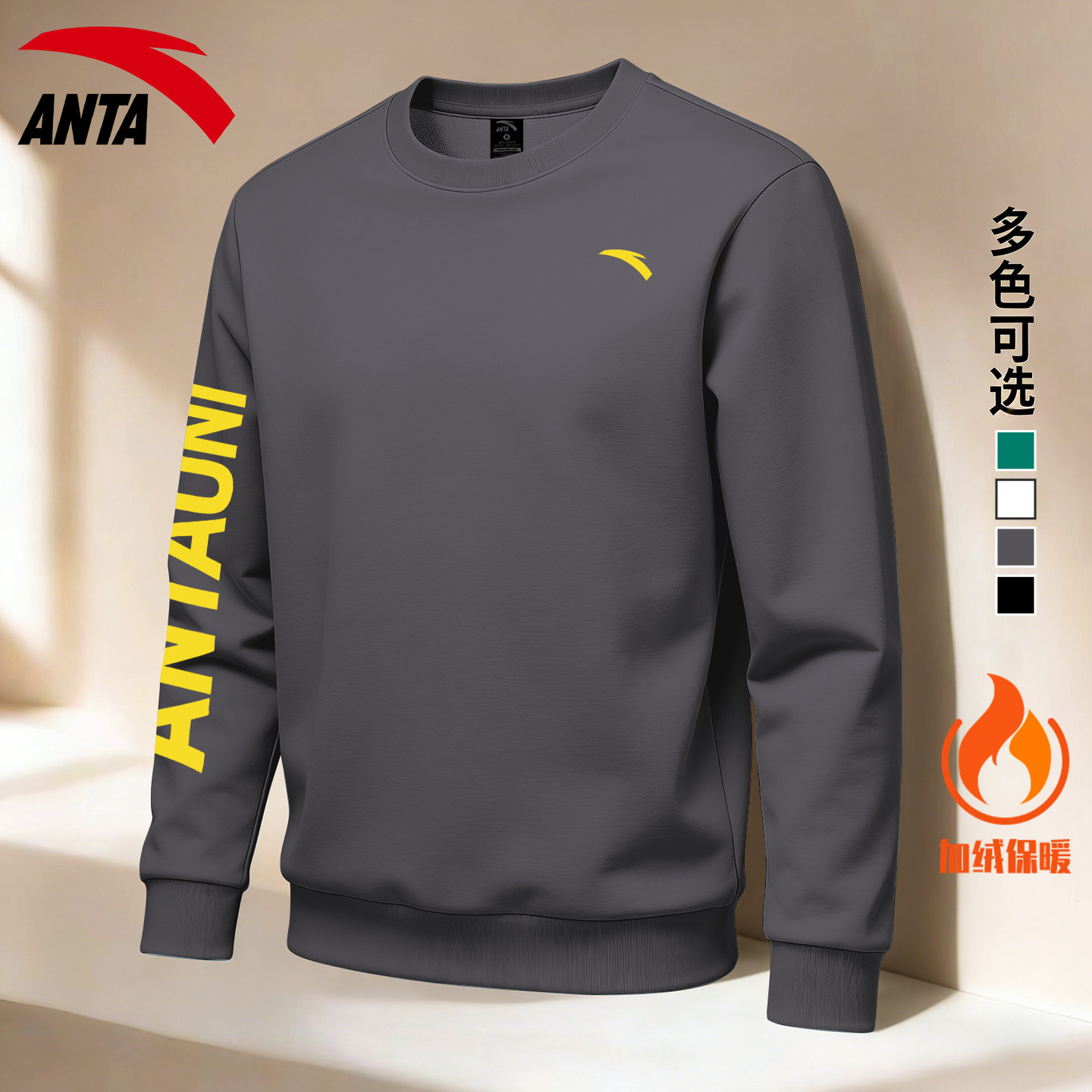 安踏卫衣男款休闲黑色加绒打底衫2026春季新款宽松大码运动上衣