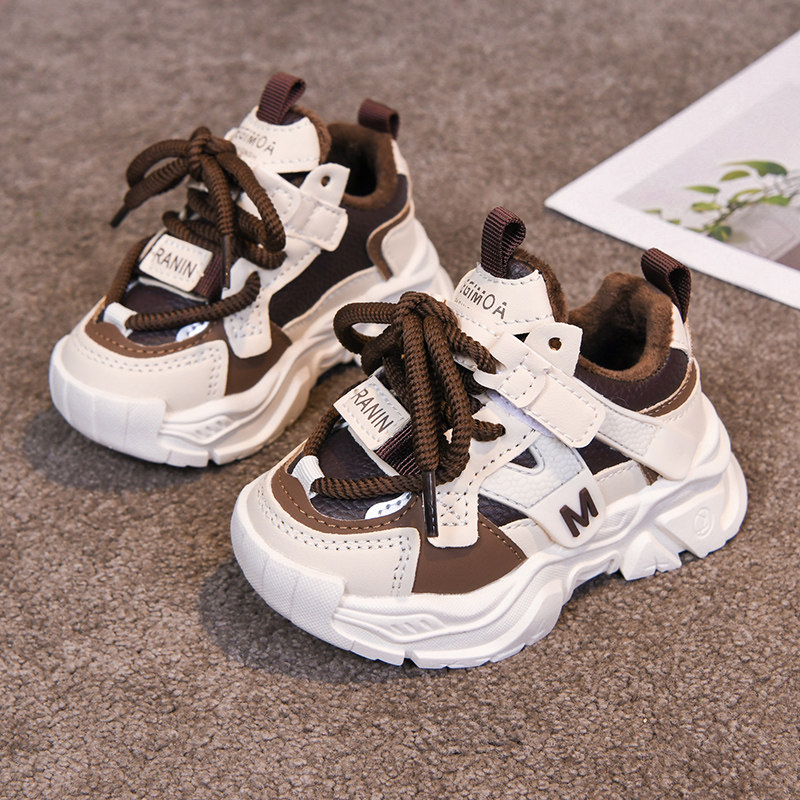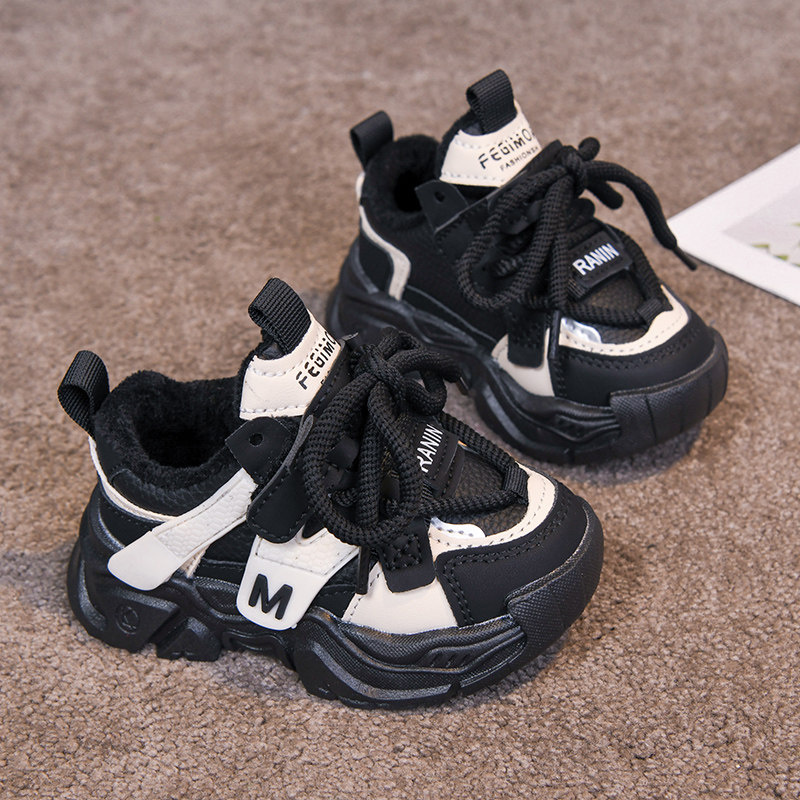 儿童运动鞋秋冬新款女童老爹鞋皮面小童轻便加绒男童休闲鞋跑步鞋