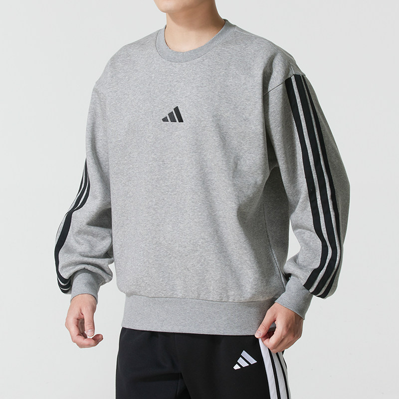 阿迪达斯加绒卫衣男装冬季新款灰色运动服保暖套头衫休闲加厚外套