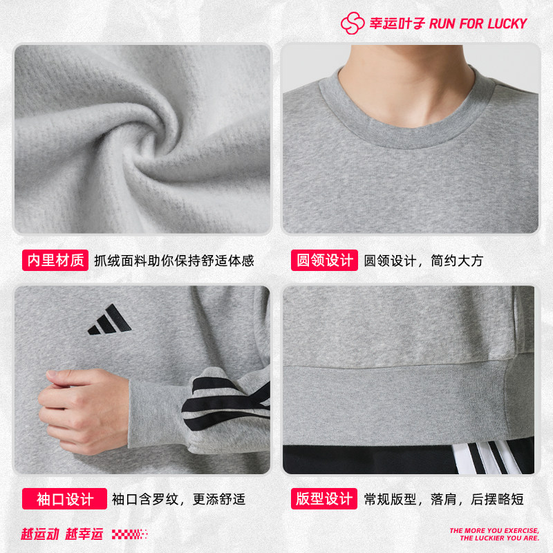 阿迪达斯加绒卫衣男装冬季新款灰色运动服保暖套头衫休闲加厚外套