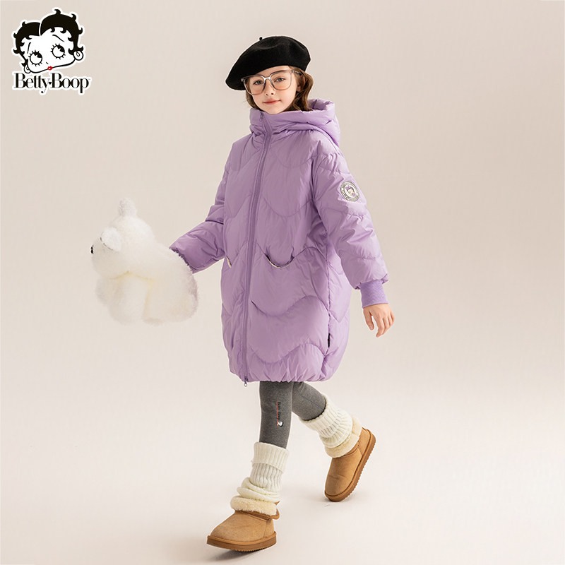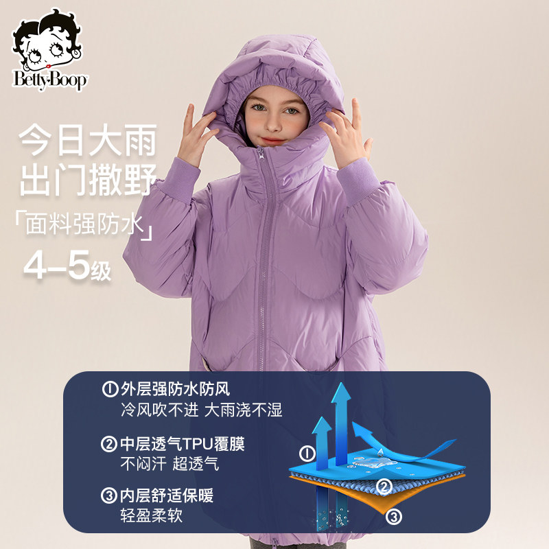 贝蒂冬季女童防水白鸭绒中长款羽绒服外套2026新款女大童儿童上衣