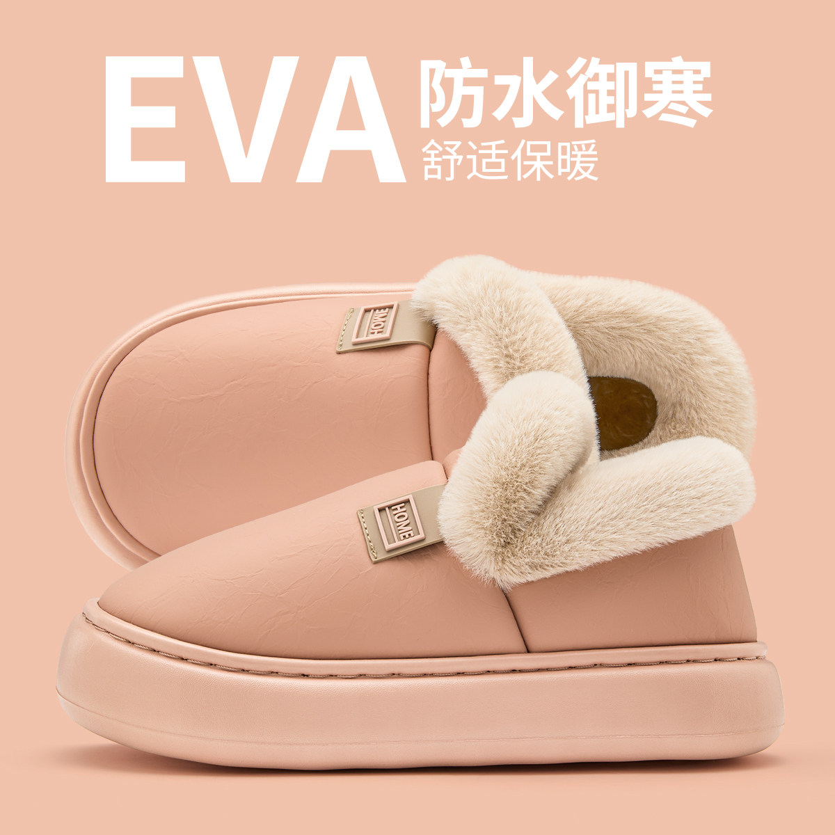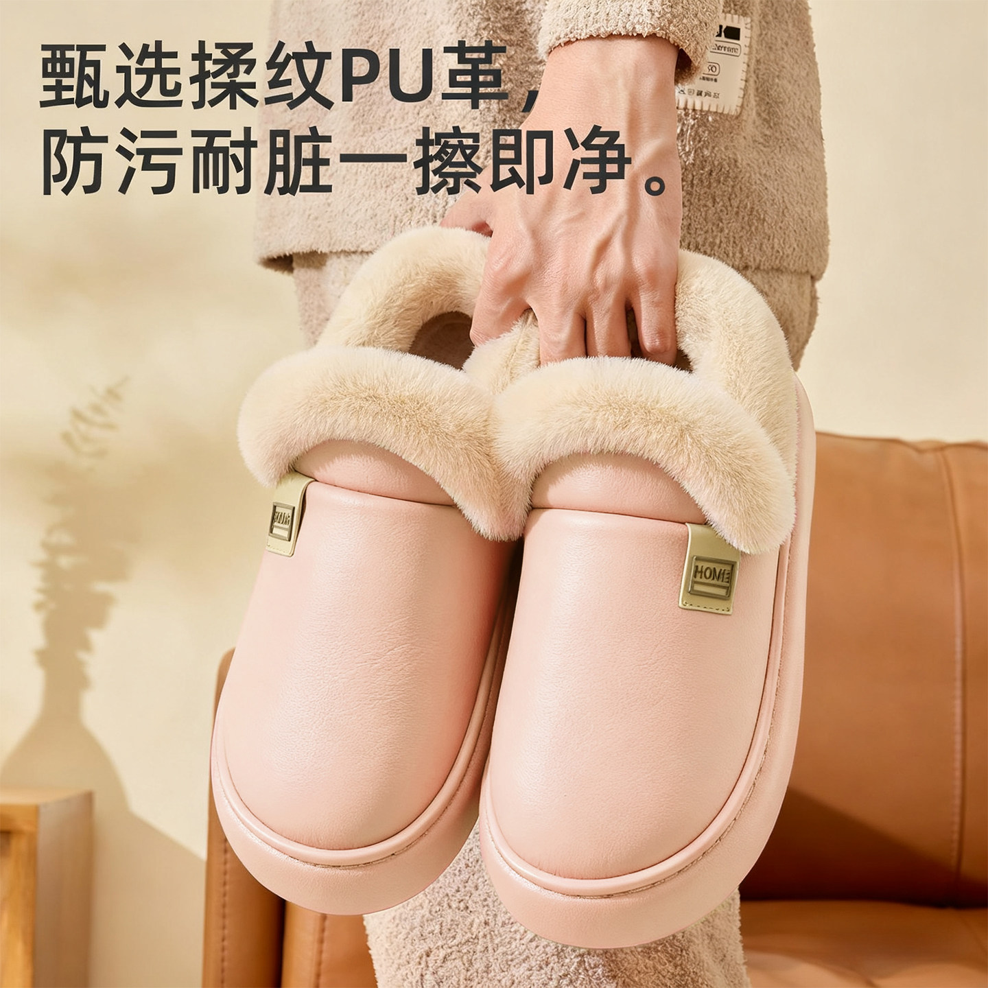 防水棉鞋女款冬季2025新款防滑家居抗菌加绒外穿pu保暖包跟棉拖鞋