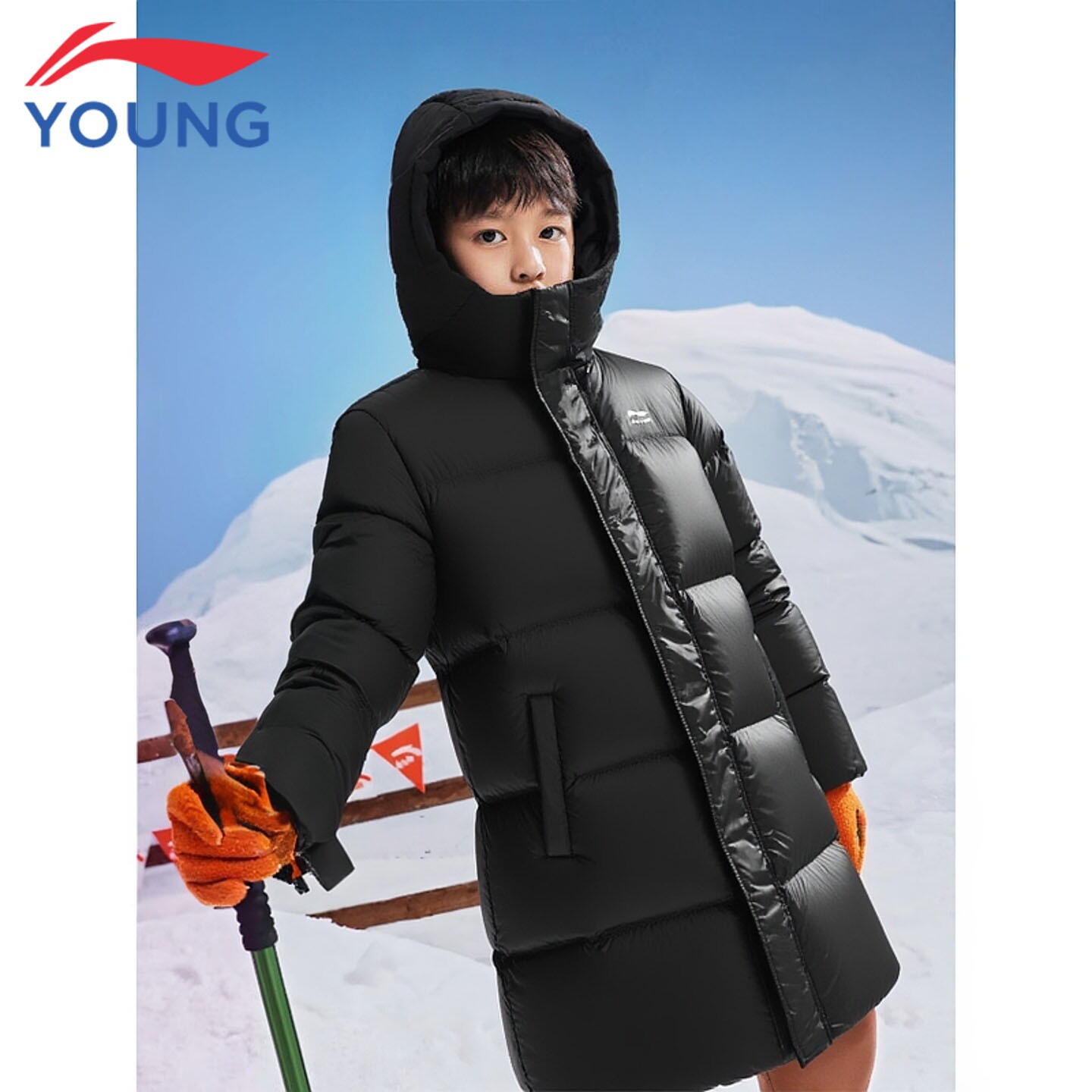 李宁童装儿童羽绒服男童大童26新款春秋中长加厚保暖防风连帽外套