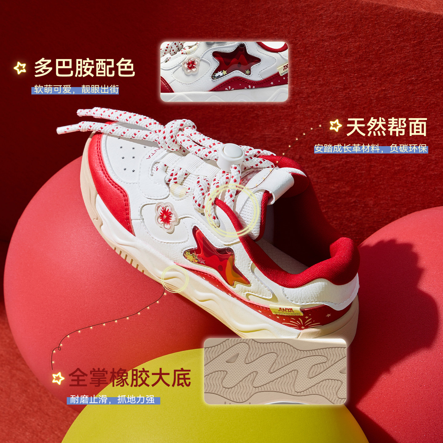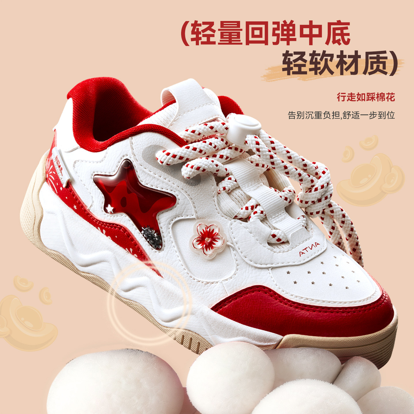 奶昔2丨安踏儿童运动鞋女童鞋26新年限定红色低帮板鞋潮流小白鞋