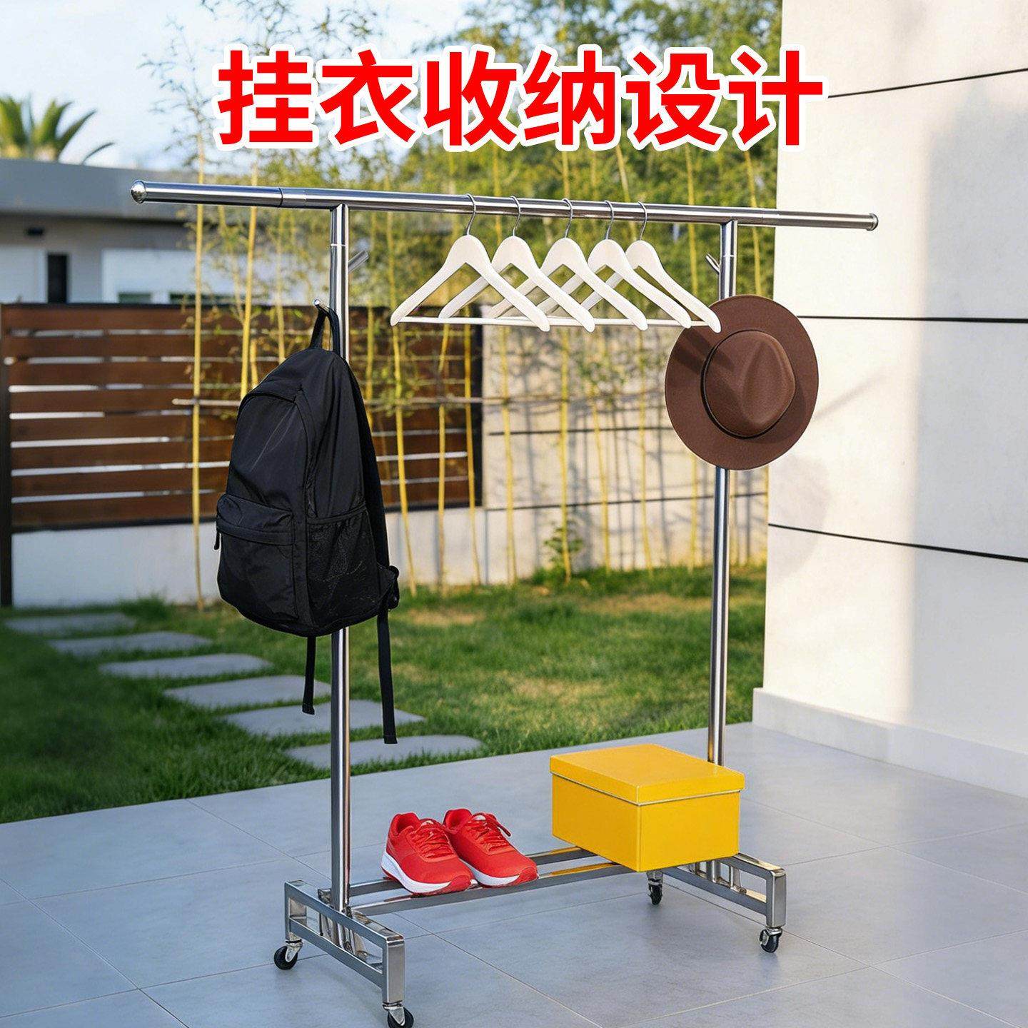 晾衣架特厚不锈钢落地式可伸缩折叠移动户外简约晾晒架晾挂衣神器